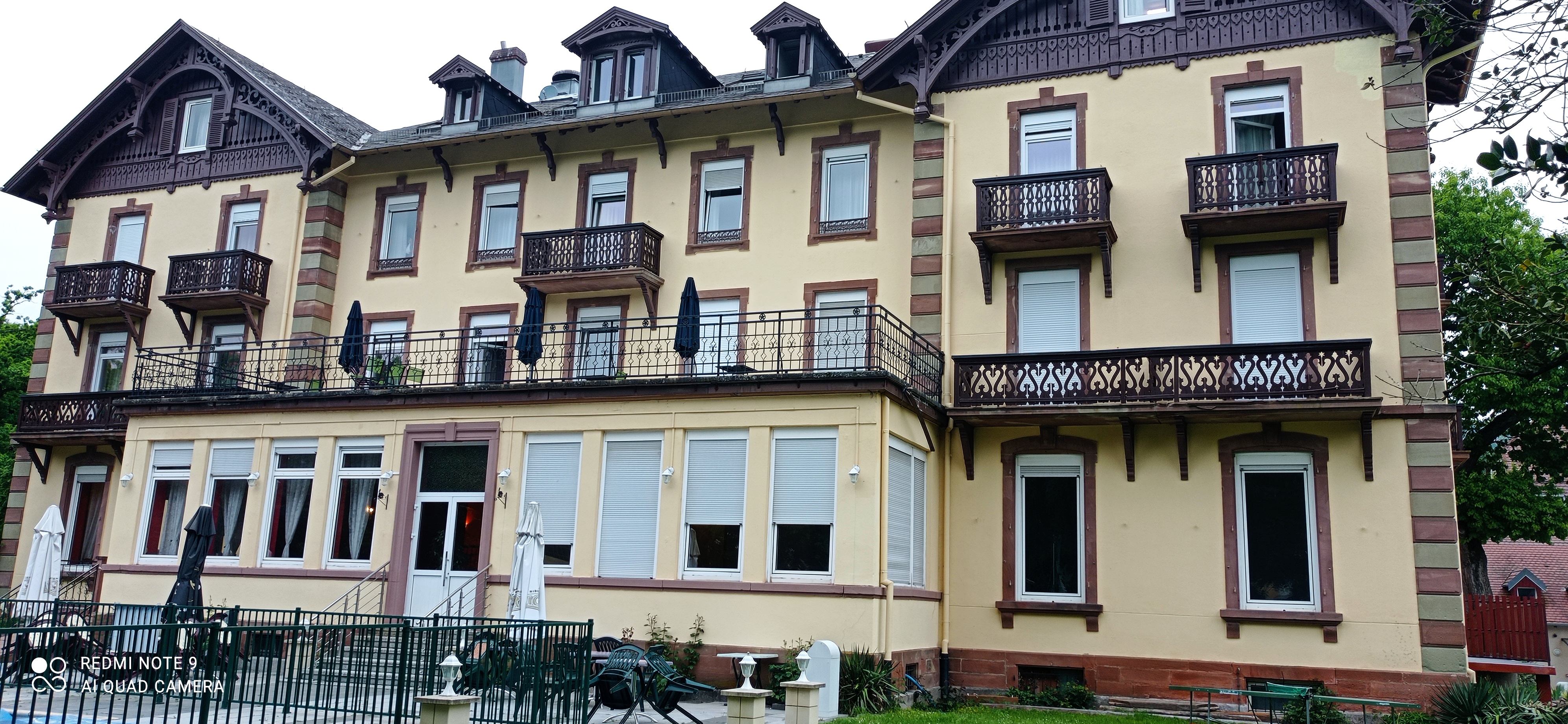 Beau cadre ancien. Bel hôtel extérieur. Chambre correcte mais sdb désuète car aucun rangement.🤔 Douche italienne non protégée (rideau) ???.😡 Repas simple car 2 bus de 55 et 40 personnes = Cuisine difficile !!! Dimanche = choucroute correcte.😋😋. Notre staff avait prévu animations 👏🍾🥂👍sinon en octobre région calme. Merci à Cœur & Santé Mondelange pour cette sortie Alsacienne.😀💝💖