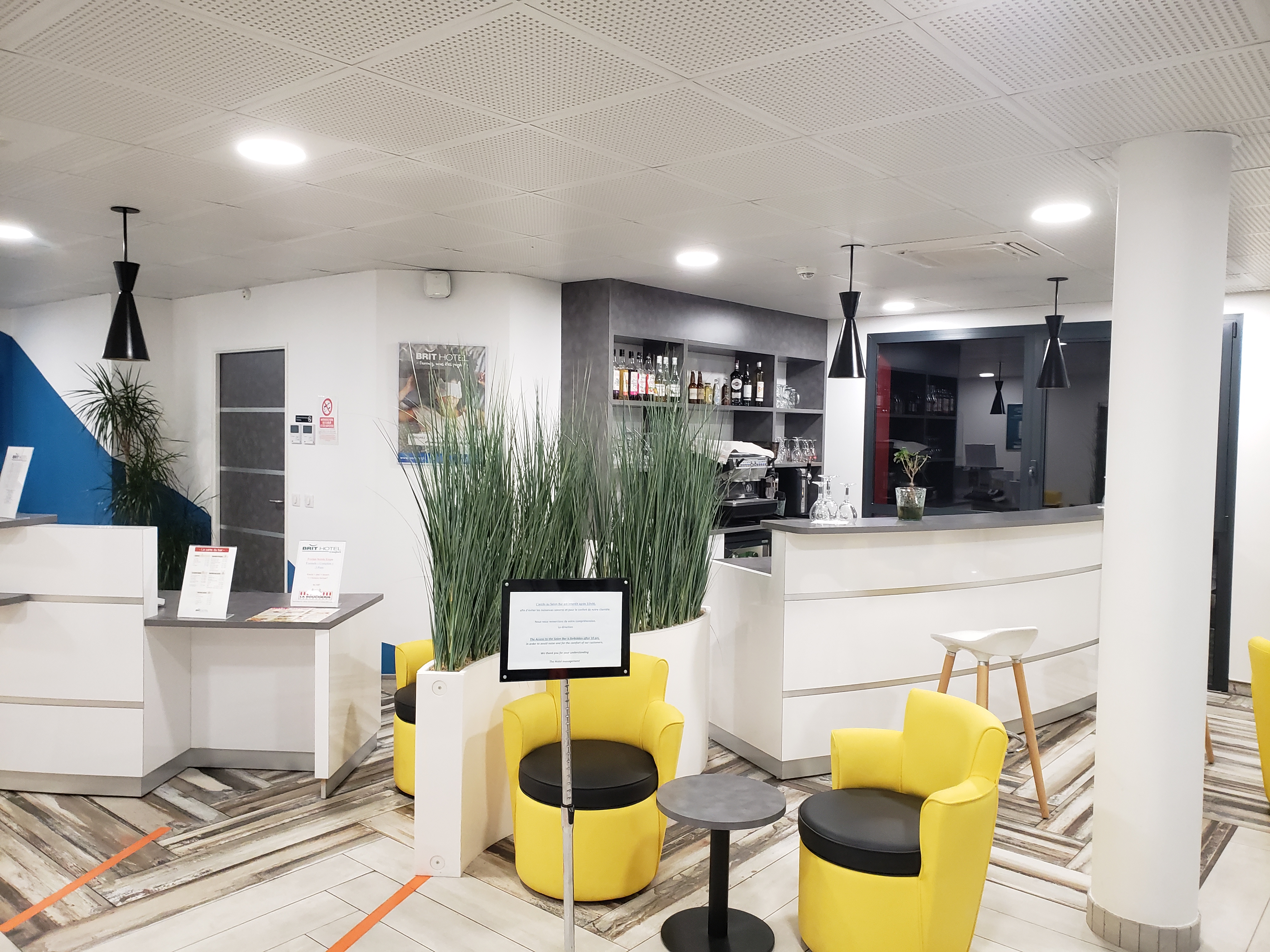 Horreur!! Bien sûr l offre est alléchante, le prix, la jolie chambre, mais en fait tout est en « plastique »: la moquette, le carrelage les meubles, les rideaux..même l escalier est recouvert de moquettes synthétiques, le petit déjeuner, c est pareil, le sol les tables,etc…. Bref une nuit horrible à ne pas pouvoir respirer correctement. Au petit déjeuner tout semble très bas de gamme, à part les yaourts locaux, viennoiseries minables, pain industriel, Faut que j arrête de rêver, le mieux c est le rbnb,ou les gîtes, faut que j arrête les chaînes. Un petit mot gentil pour le personnel très sympa, les pauvres ils travaillent la dedans