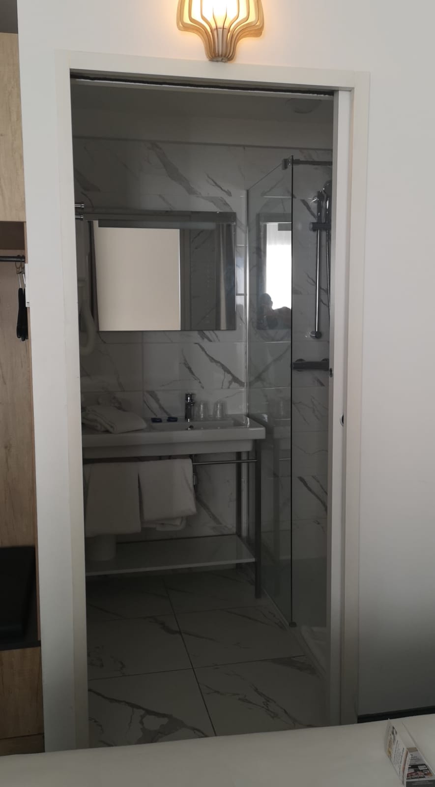 Nous avons réservé une chambre pour 3, très spacieuse, la salle de bain et les toilettes étaient séparés. Literie confortable, grande douche à l'italienne et super petit déjeuner !!