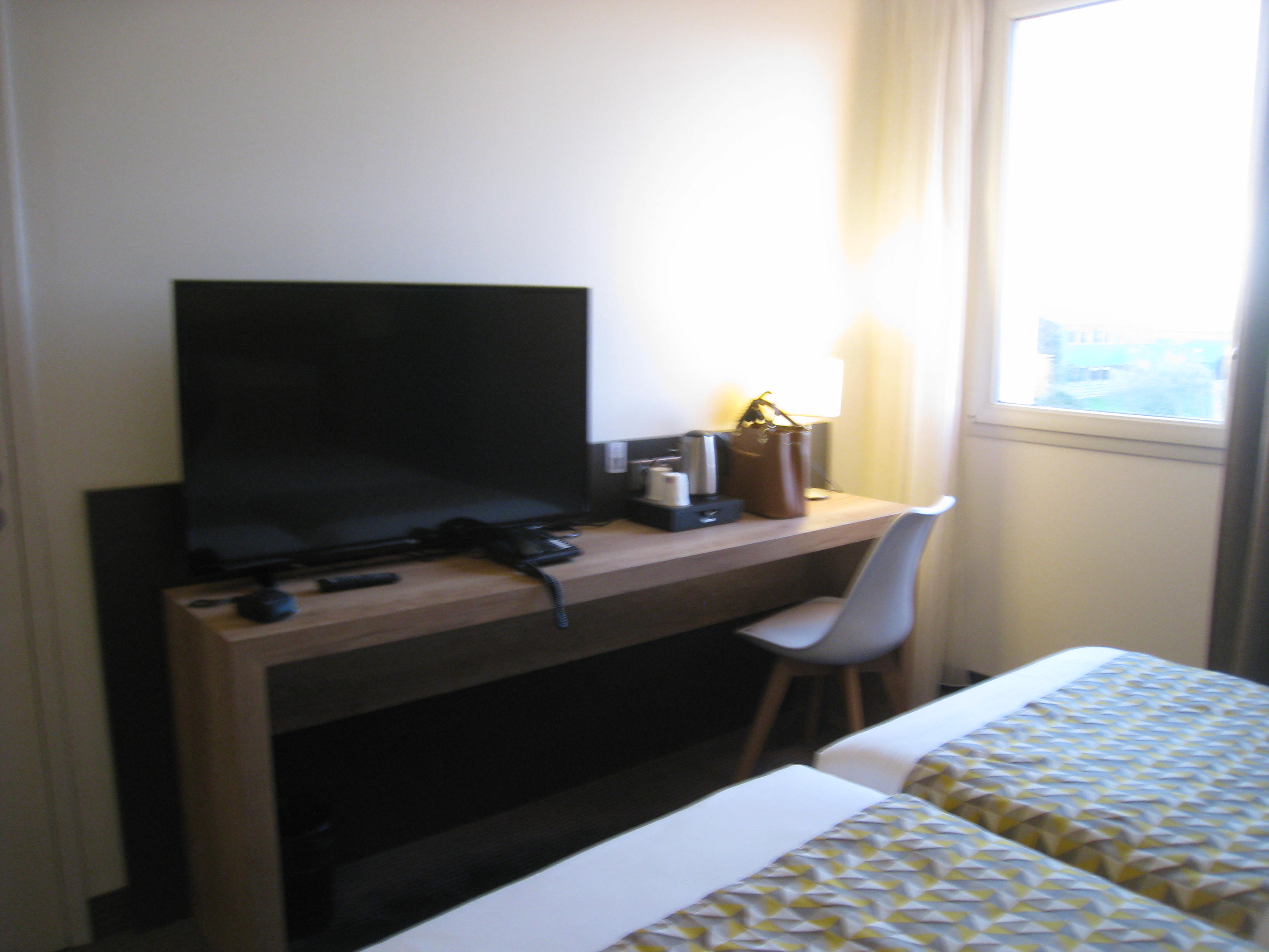 Séjour passé entre le 22 et le 27 avril 2017 : + chambres propres, lumineuses et fonctionnelles. + literie vraiment confortable. + une grande télé dans la chambre avec une excellente offre de chaînes et qualité de reception. + le petit bouilloire, les sachet de thé et la bouteille d'eau offerte chaque jour :-) + l'ascenseur + le petit déjeuner est excellent. + le personnel très professionnel et très serviable. + grand parking pour les voitures. - l'odeur du renfermé dans les couloirs - l'isolation phonique des chambres côté couloir est moyenne malgré qu'elle est excellente côté exterieur. - la climatisation de ma chambre faisait beaucoup de bruits parasites. - le service de chambre a oublié de finir son travail 3 jours sur 5 dans mon cas (pas de savonettes durant 2 jours, et draps de lits pas correctement remis 3 jours sur les 5 que j'ai passé). - la fenetre donne sur le parking et sur la route pas de quoi faire rêver.