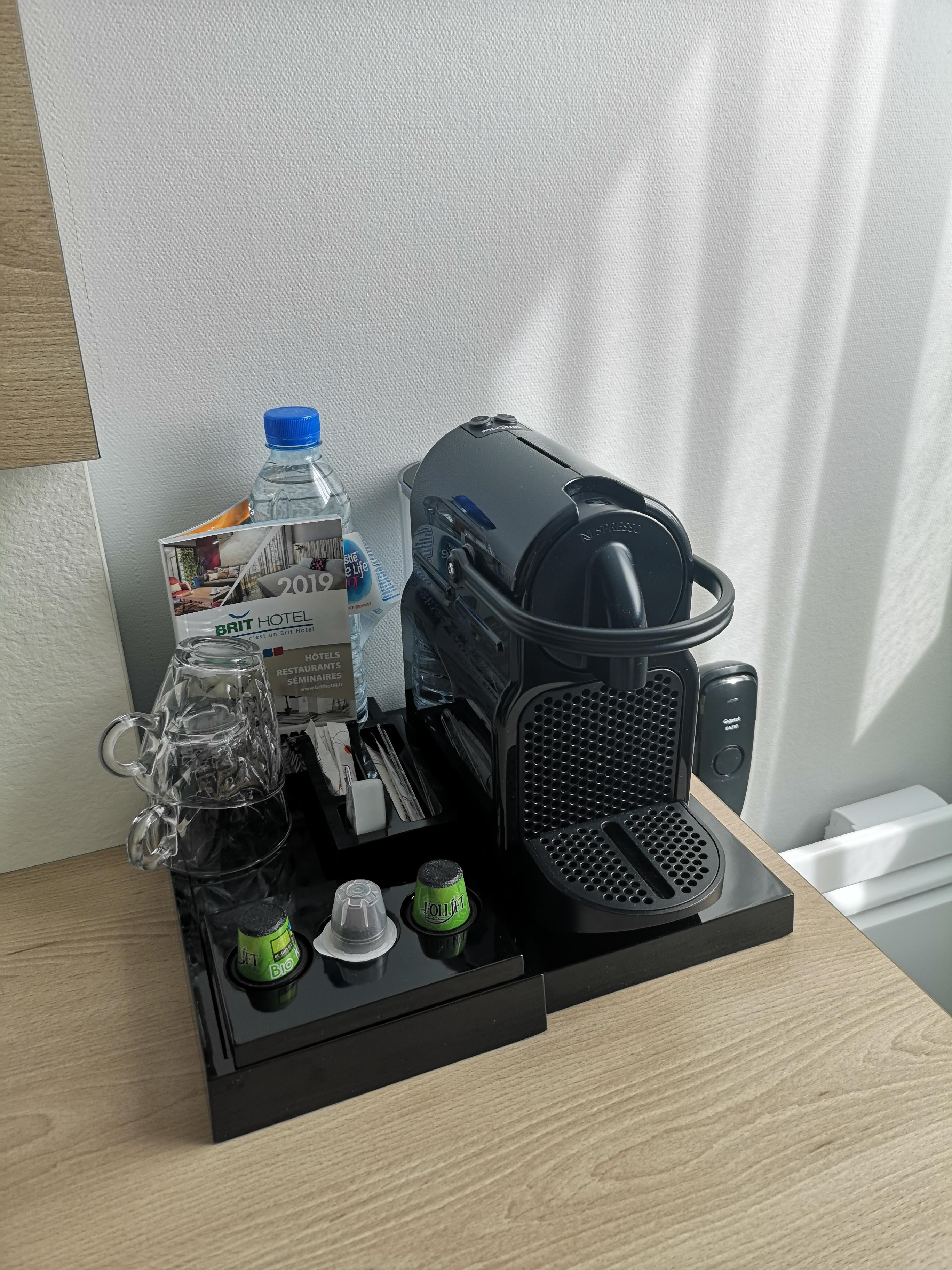 L'accueil et le personnel sont sympathiques. La chambre est propre bien qu'un peu petite. Les lits sont confortables et la chambre bien insonorisée. Quelques petits détails me font donner que 3 étoiles. Dans ma chambre le couvercle de l’abattant des toilettes était absent, la douche n'a qu'une demi-parois, de ce fait on arrose copieusement le sol et le tapis de douche, 1 seule prise électrique dans toute la chambre. Dans l'ensemble bon séjour mais la chambre est vraiment petite. Autre petit bémol, sur leur site tous nos lits sont parés de couettes, nous c'était couvertures.... Chaque jour ... vous trouverez une bouteille d'eau... nous en avons eu une seule pour une chambre 2 personnes sur les 3 jours... il nous en manque donc 5... en période canicule.. on aurait vraiment aimé trouver de l'eau chaque jour.... ;-(
