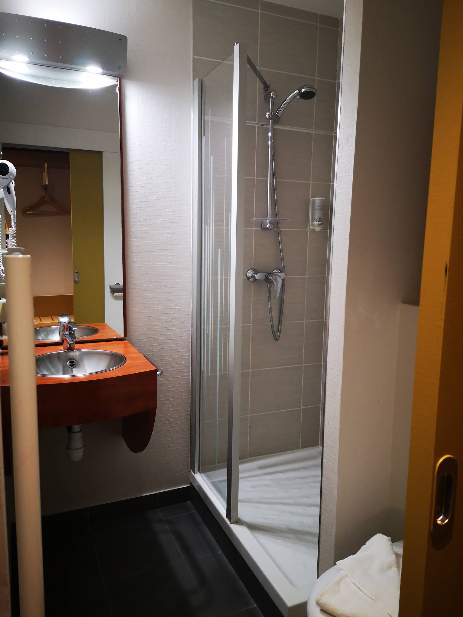 Chambre pas mal en revanche la douche sans porte vraiment pas top dans une mini salle de bain il y a l'eau partout Pas de chauffage allumer avant d'arriver donc bien froid le temps que la pièce se réchauffe Point positif le service d'accueil humain toute la nuit.