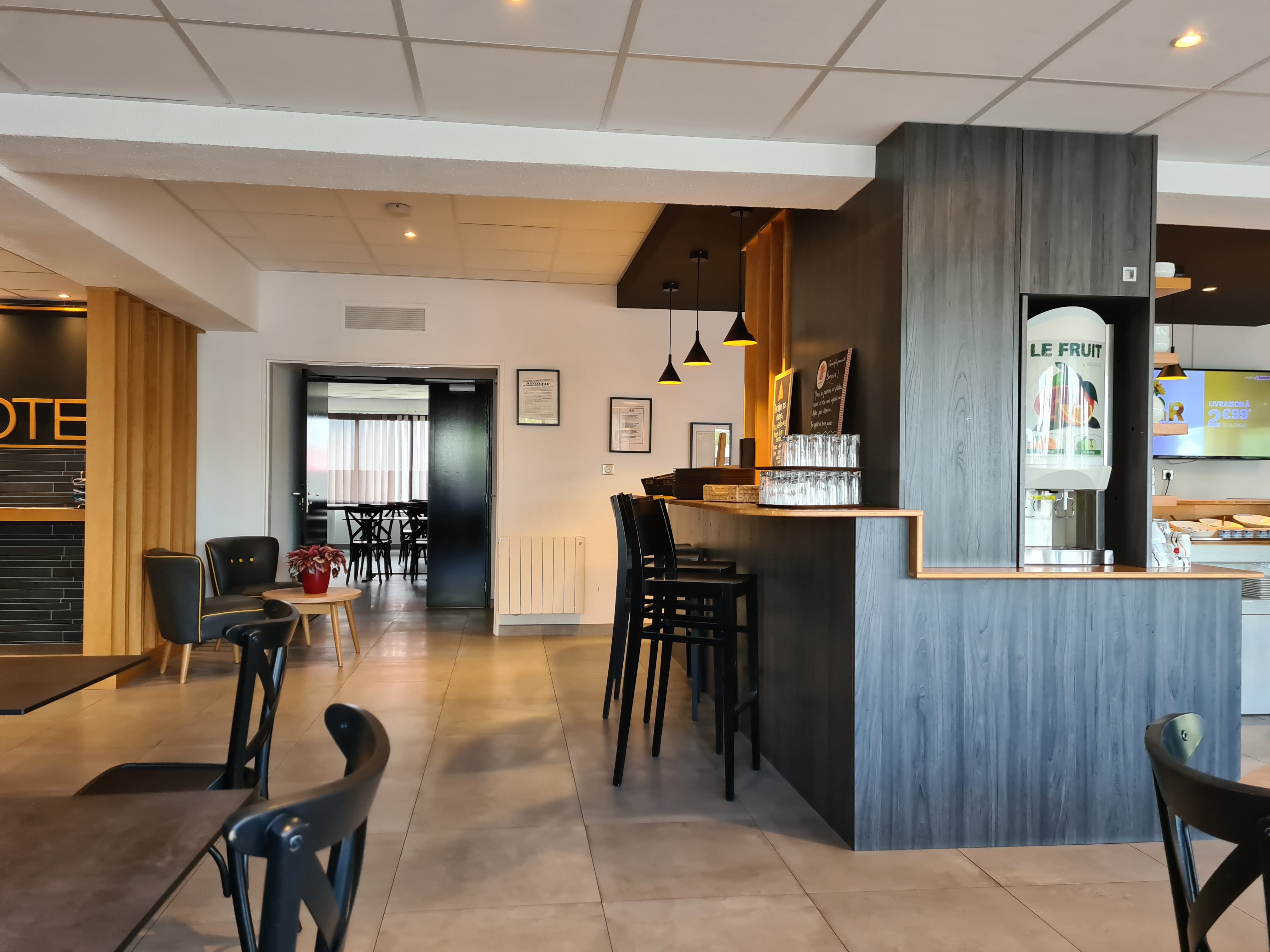 Hôtel situé dans une zone d'activités. L'établissement est composé en deux bâtiments avec parking. Le personnel est très accueillant et serviable. Les chambres sont très correctes, à noter une très bonne literie. Le petit déjeuner est très bien. Pas testé le restaurant puisque ce dernier n'est ouvert qu'en semaine. Il aura manqué soit un plateau de courtoisie ou un distributeur de boissons chaudes et froides.
