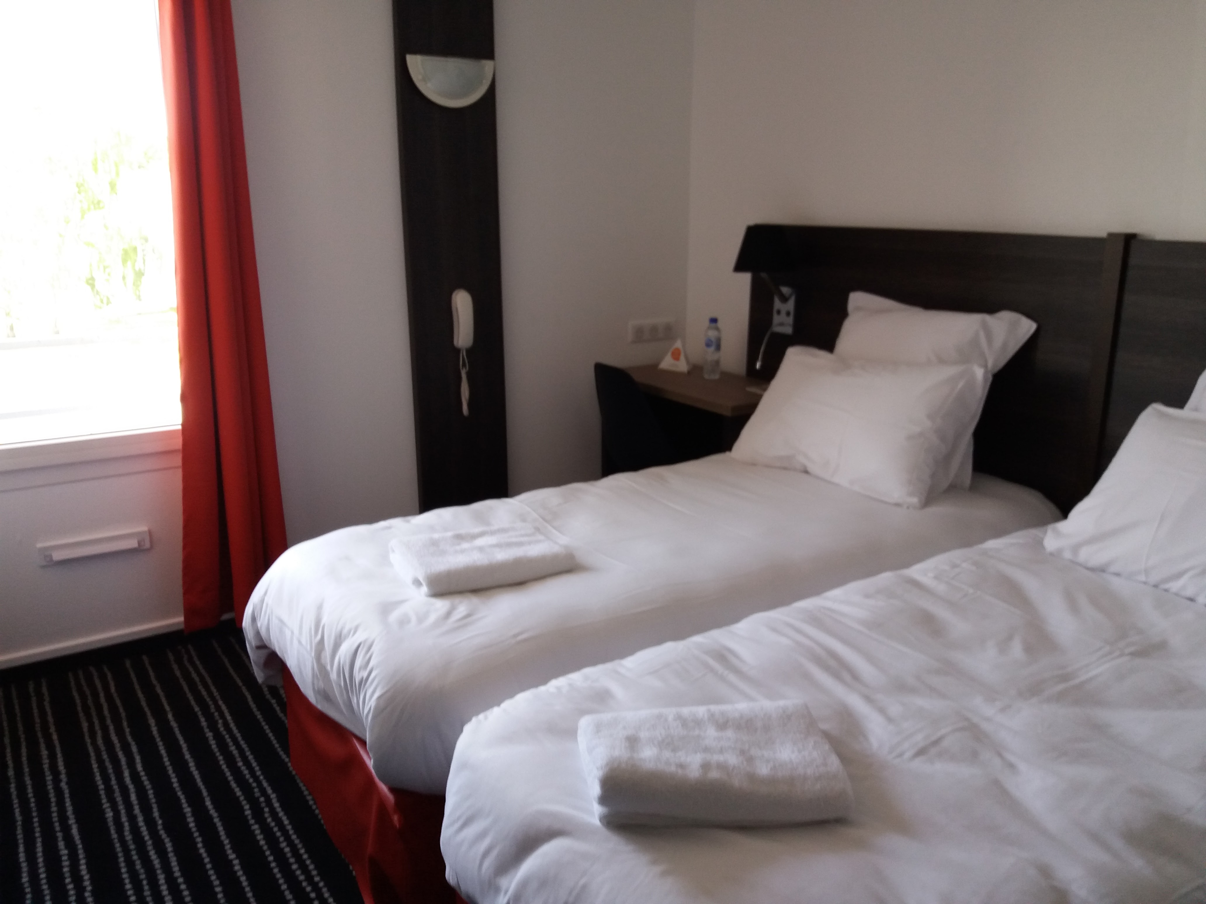 Arrivé en début de soirée. Très bon accueil. Hotel sans ascenseur. Si vous avez des soucis de mobilité il faut vous renseigner! (Pour avoir des chambres en rez de chaussée). Les chambres sont correctes, propres, avec une bonne literie, mais manquent d'insonorisation et de rangements; la porte de la salle de bain/wc ne se fermait pas et restait entrebaillée... prix correct cependant. Nous avons apprécié le restaurant Le bistrot au rez de chaussée, qui vous permet de bien manger pour 14.90 plat et dessert (ou entrée) et 18.90 pour formule complète. Je recommande le menu du jour.