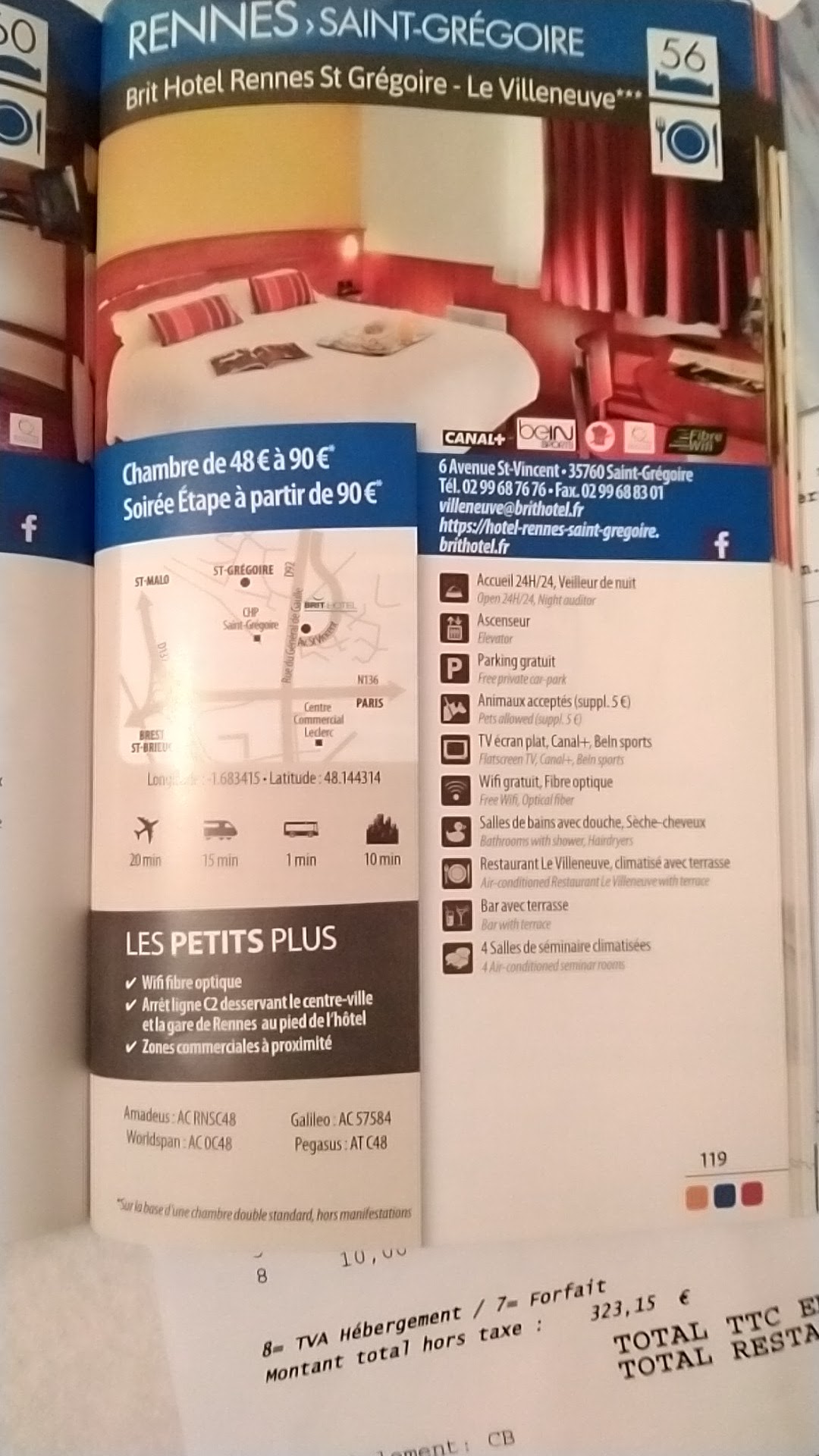 Bon accueil, bon service restaurant. Le hic=le prix pour un 2étoiles!!!! Sous prétexte d'un salon de l'agriculture professionnel se déroulant sur Rennes, j'ai réglé une note de 160€ pour une chambre+10,5€ de petit déj.(qui ne les vaut pas)+ Frais de séjour pour une nuit soit au total 177,35€. Lorsque j'ai appelé on m'a annoncé un prix de 120€ que je trouvais déjà cher mais j'ai dit ok car je ne voulais pas dormir dans la voiture vu que tous les hôtels à la ronde étaient complets ; une fois sur place la facture était toute autre : il a bon dos l'agriculteur professionnel !!! La chambre n'a rien d'extra : un lit 140*190, lumière jaune très sombre(pourquoi n'y a-t-il pas de led?) même ds la sdb dans laquelle je retrouve un coton-tige alors que n'y ai même pas mis encore les pieds!!! J'ai plus ou moins bien dormis tant cette facture me trottait dans la tête !!! J'ai payé moins cher mon séjour en Thalasso à Carnac avec d'excellentes prestations à l'hôtel Les Salines 2jours auparavant !!!!