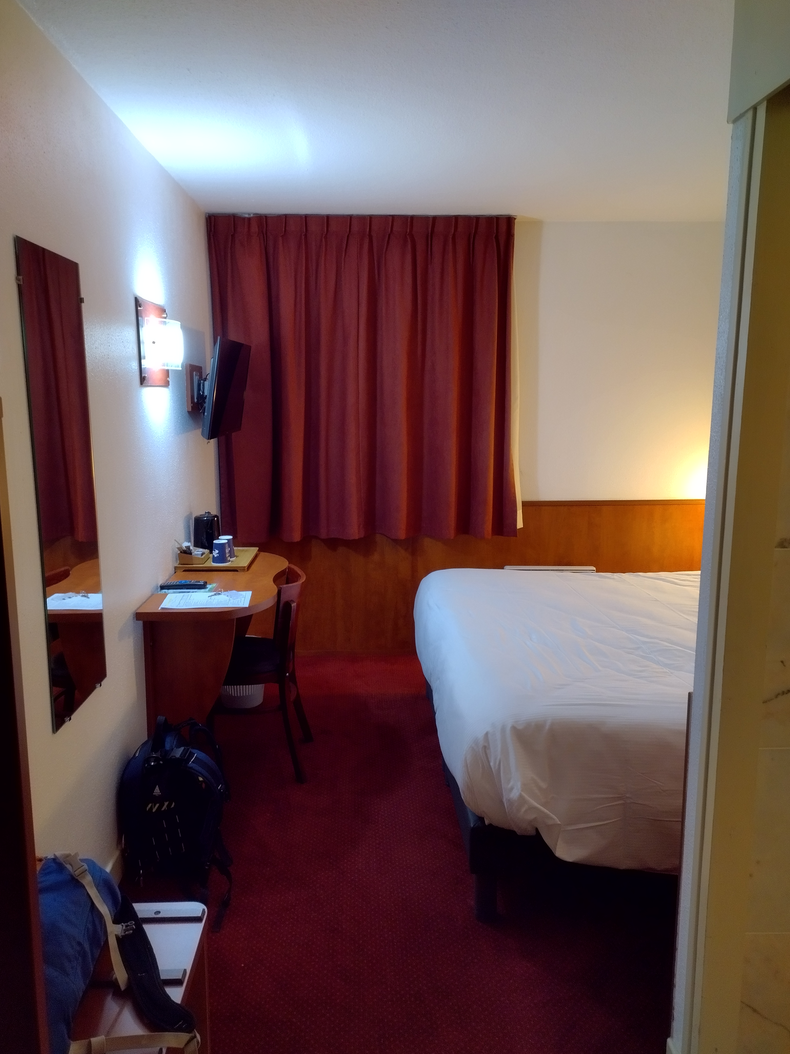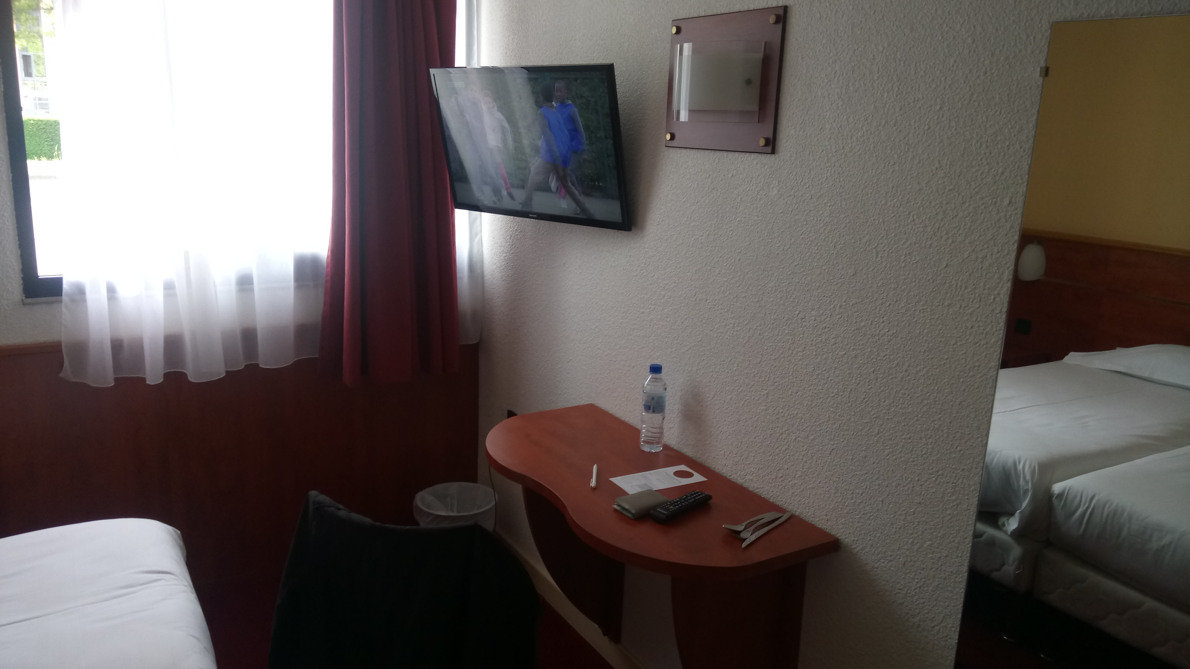 Chambre moyenne, pas de plateau de courtoisie alors qu'il est indiqué sur le site que toutes les chambres ont un plateau de courtoisie, donc pas de bouilloire dans la chambre et donc publicité mensongère, malgré mon signalement le soir même à la réception, accueil réception très moyen. Je n'y retournerai pas.