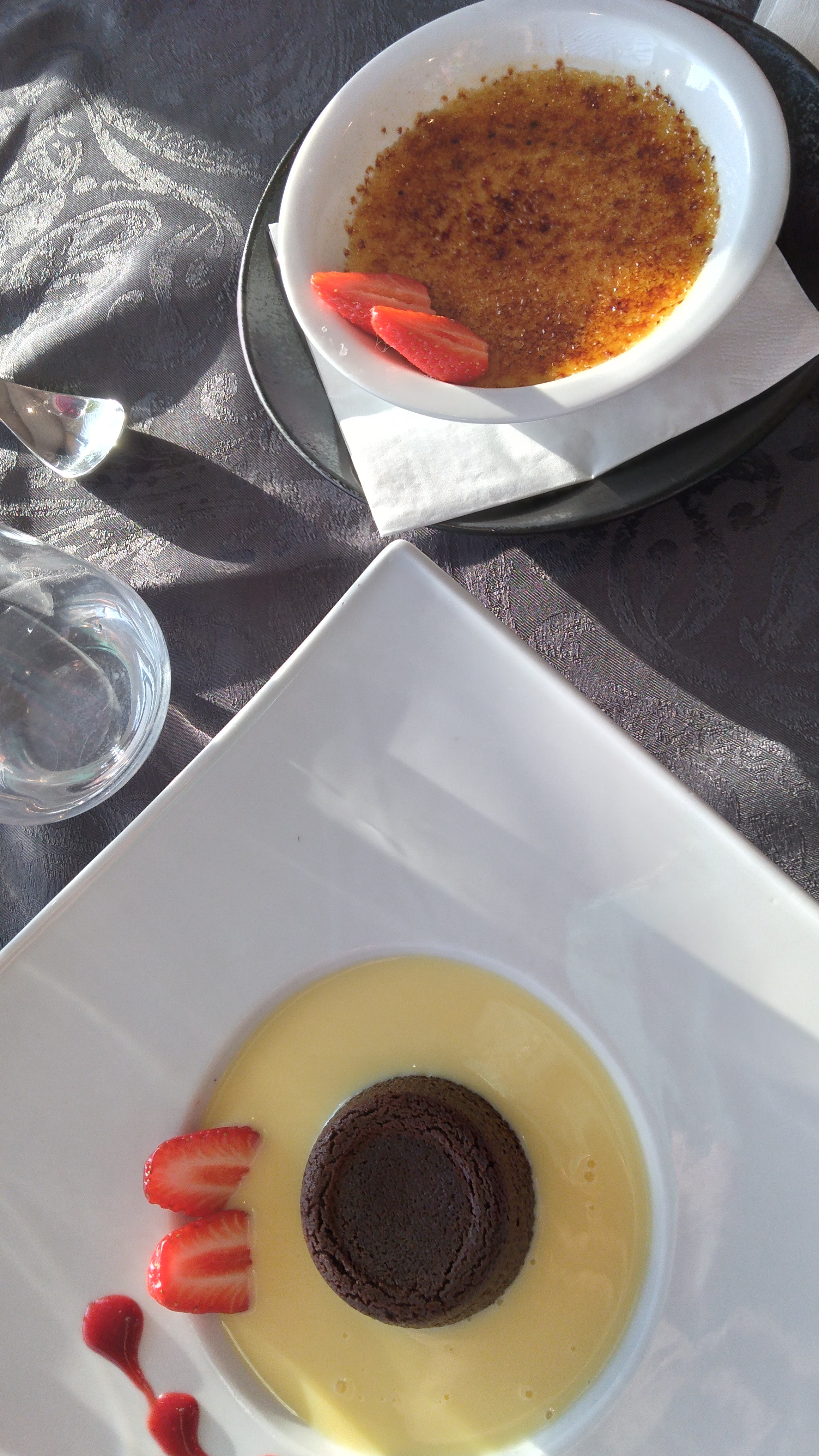 Une organisatiln semble t il un peu complique , donc beaucoup d attente pour commander . Puis l aperitif arrive en meme temps que les entrees .Le foie gras est excellent. Mais le magret de canard n a rien d extra Un bon restaurant mais un peu cher quand meme Un coucher de soleil sur la baie magnifique.