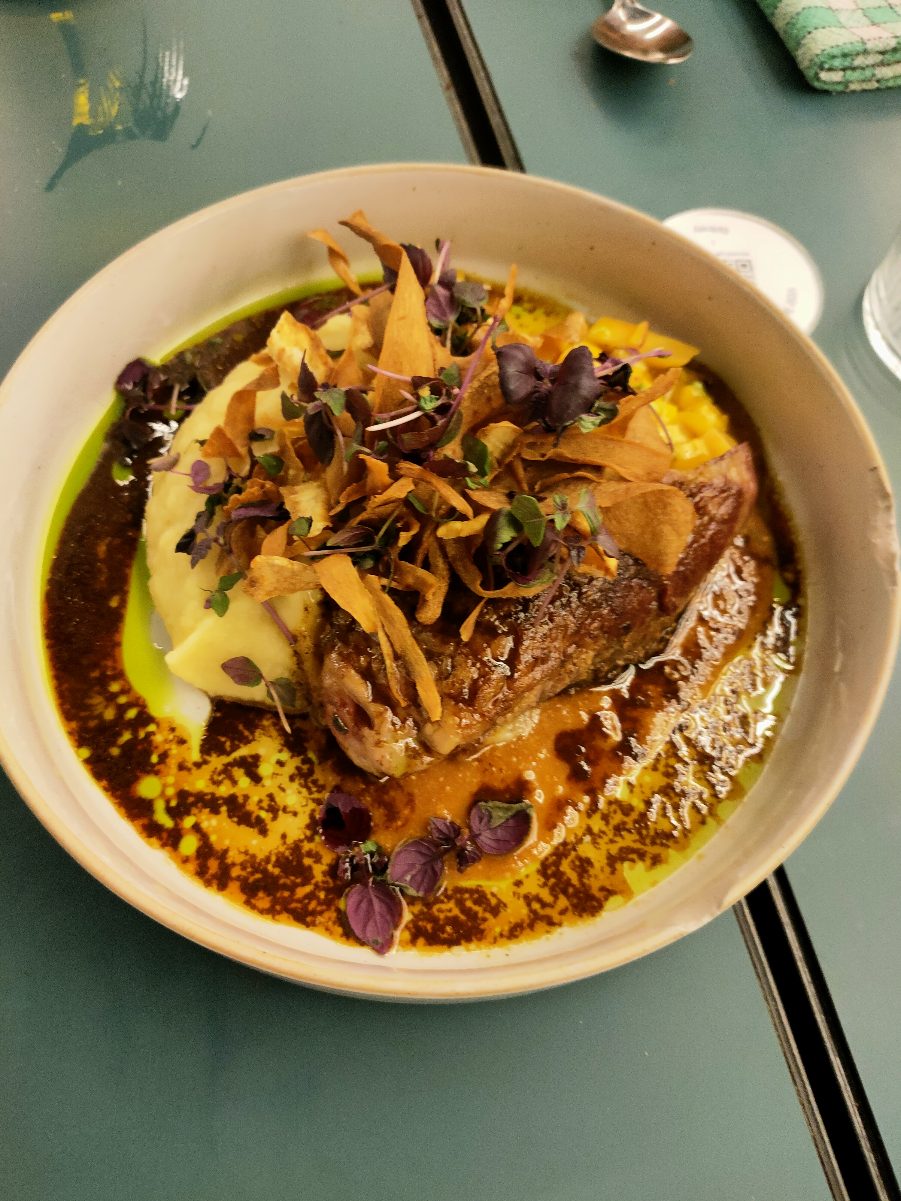 Accueil et service parfait, la déco est super belle et l’ambiance très agréable. Les plats sont très travaillés, chaque aliment est décliné (siphon, pickles etc) mais le mélange n’a pas pris pour moi, il n’y avait pas d’équilibre pour la plupart des plats. Par exemple le crabe avocat wasabi avait l’air d’une très bonne idée mais la confiture prenait le dessus sur tout les aliments. Pareil pour la sauce du millefeuille de patate douce, ça devenait vite écœurant. Dommage car le concept de ce restau est très cool, peut être que ce n’était pas la bonne période. Je recommande quand même