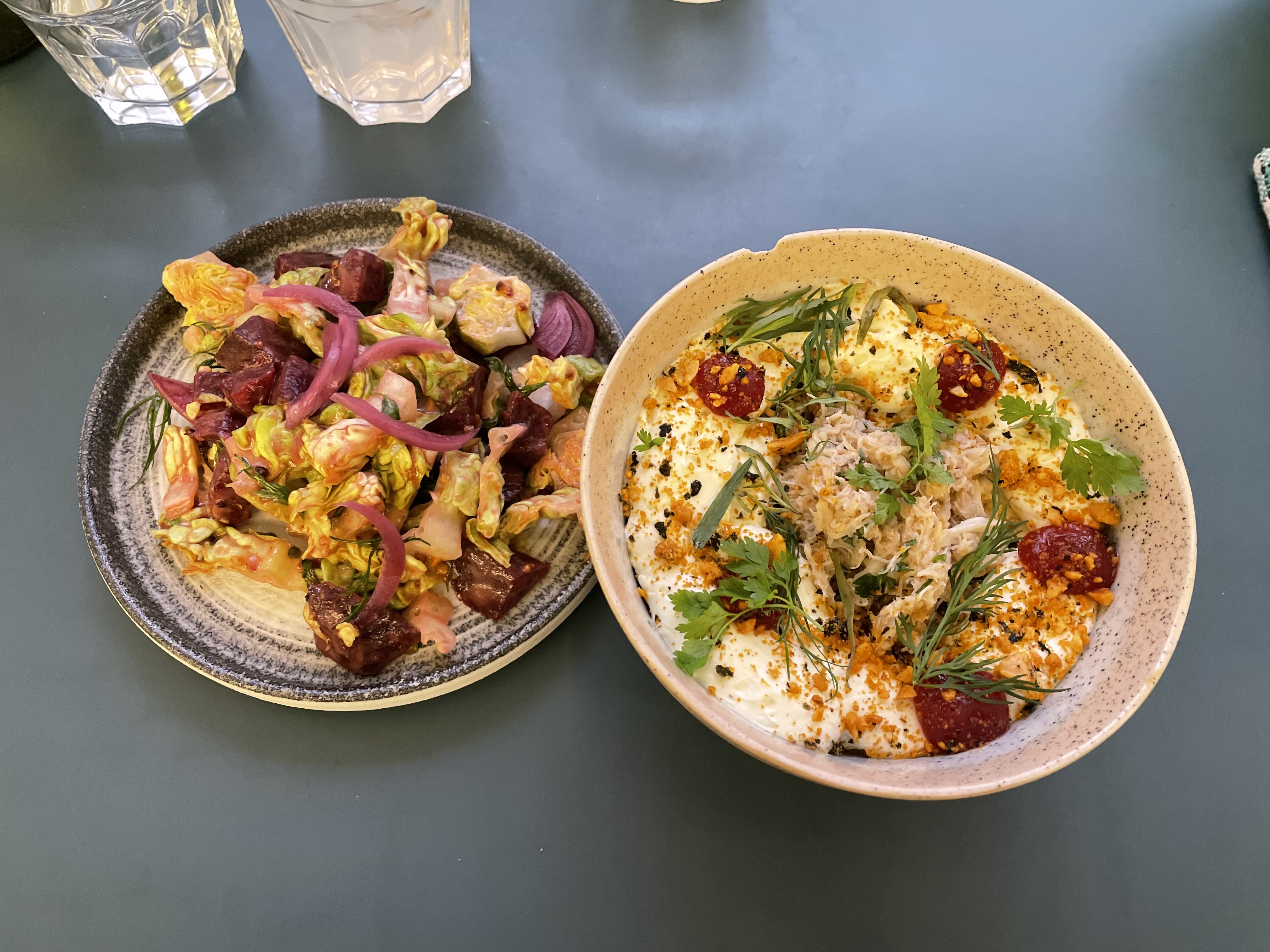 Super découverte, le lieu est atypique et la déco est très jolie. La carte des plats à partager est affichée sur le mur. Nous avons adoré l’aubergine et le plat mystère, un peu moins la daurade