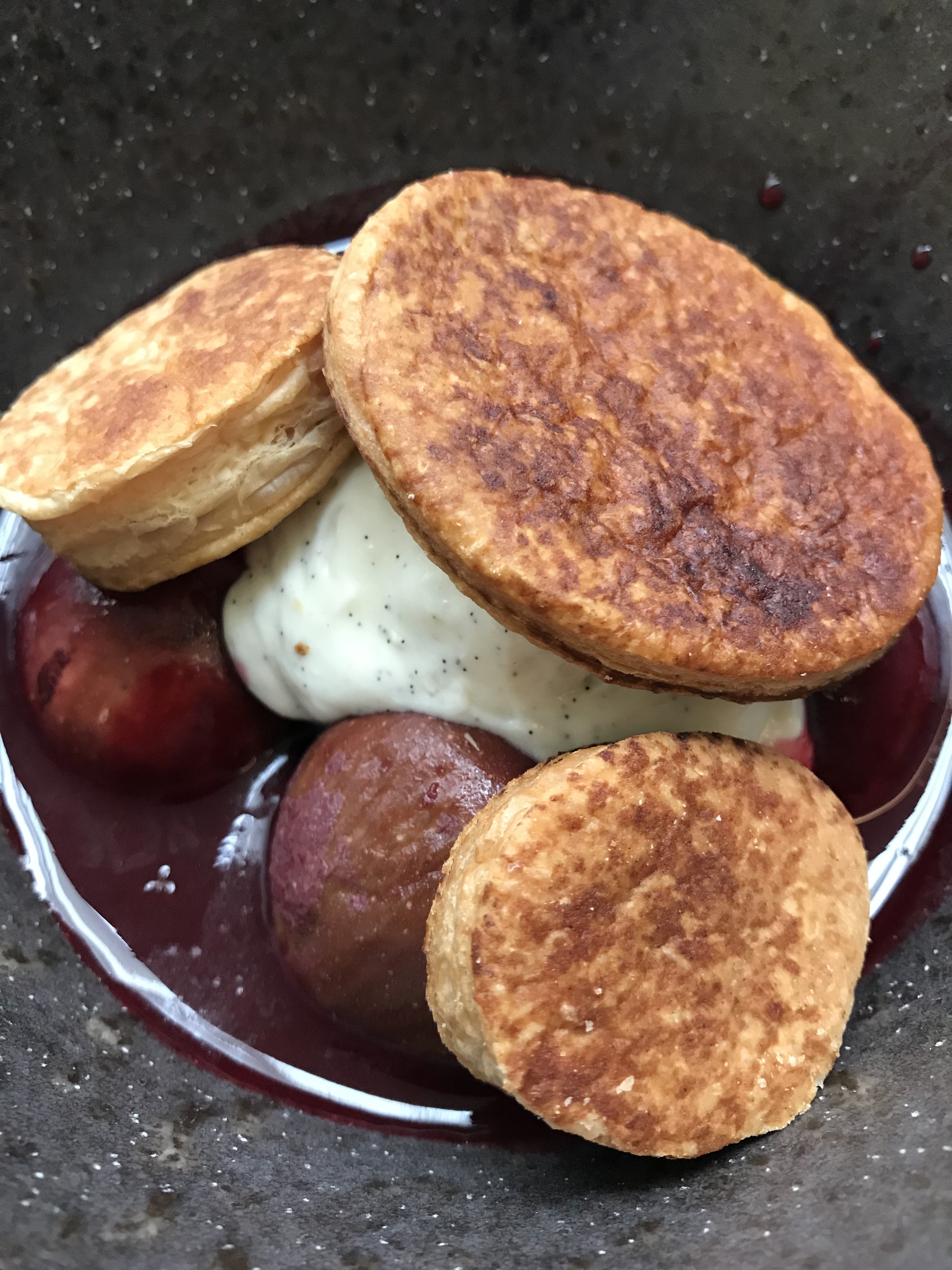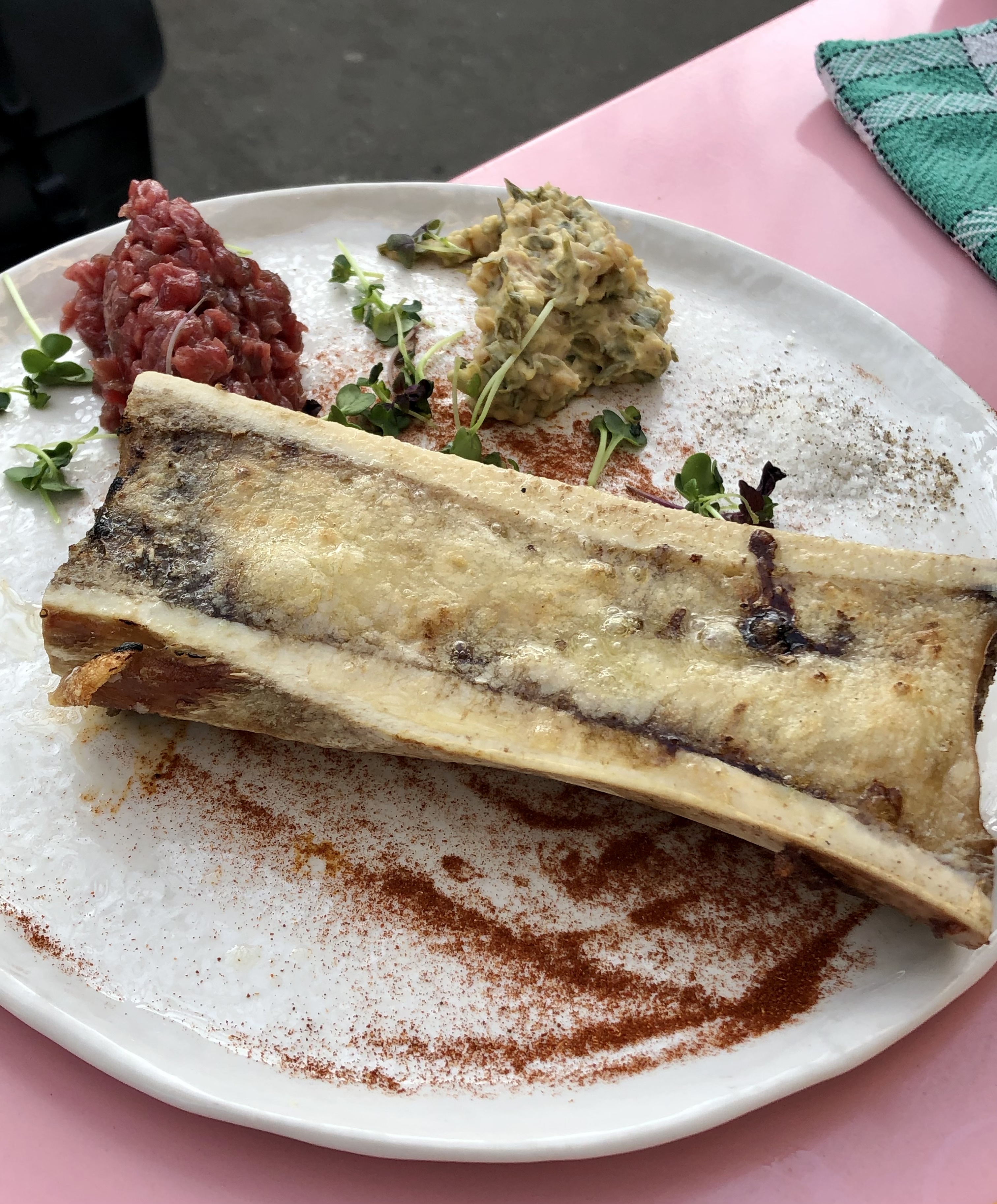 5 étoiles pour la food et la carte des boissons. 5 étoiles pour cette assiette de couteaux divine et pour l’os à moelle. 5 étoiles pour le profiterole : omg, à se damner ! 5 étoiles pour le service de Sidy, un jeune serveur adorable. Mais alors, 2 étoiles pour l’attente un peu longue entre la prise de commande, l’arrivée des boissons et celle de chaque plats … j’ajoute zéro étoile pour le comportement hautain de l’un des serveurs avec chacune d’entre nous ce soir là… dommage… contraste énorme avec le sourire caché derrière le masque d’autres serveurs !