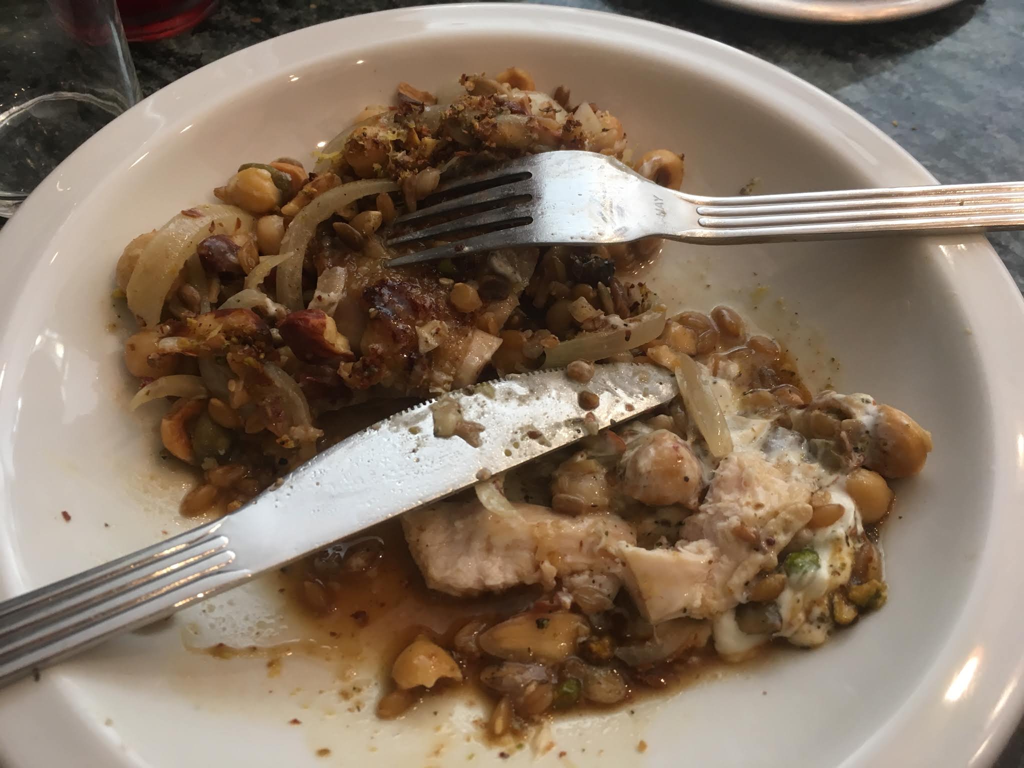 Cet établissement, ouvert récemment, est de taille restreinte, il vaut donc mieux réserver si vous souhaiter y déjeuner (ouvert uniquement les midis hors week-end). L'accueil y est sympathique. La formule propose une entrée sous forme de mezze, qui permettent de découvrir différemment plats typiquement méditerranéens, et un plat au choix entre deux (dont un végétarien). Quelques desserts sont également proposés. La nourriture servie est plutôt bien cuisinée. Le gros défaut, à mon goût, est la quantité. Les entrées sont servies dans des assiettes de la taille de soucoupes tandis que les plats le dont dans des assiettes au diamètre équivalent à celui d'assiettes à desserts. Étant donné le prix de la formule, on peut vite s'en tirer pour cher si on ne veut pas ressortir de table en ayant encore faim. À noter qu'un mur fait épicerie et permet d'acheter différents produits, en relation avec la carte, pour consommer chez soi. Pour conclure, malgré la qualité de la cuisine et l'accueil agréable, le rapport quantité/prix n'étant pas compatible avec le bon mangeur que je suis, je n'y reviendrai très probablement pas.