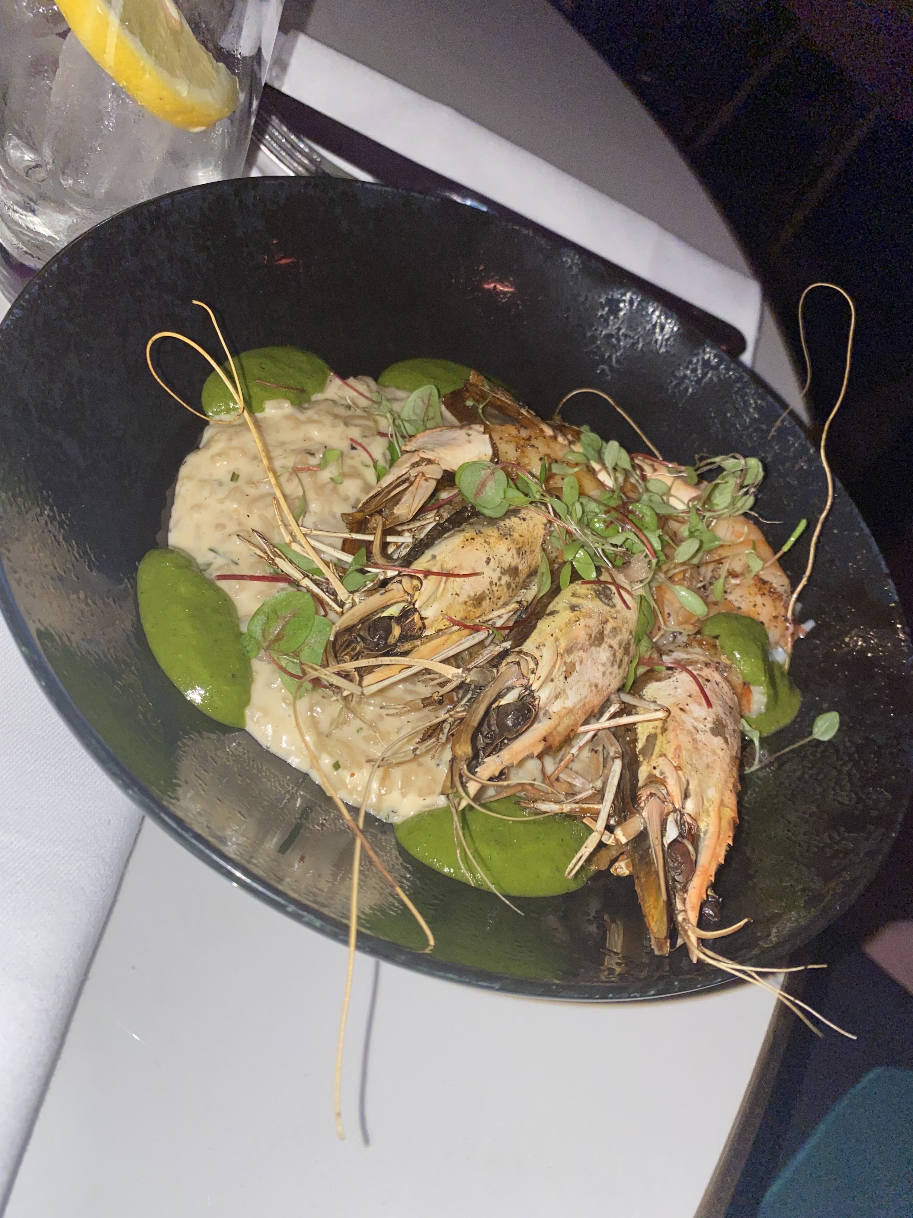 Endroit sympathique très beau cadre La première fois que j’ai était tout était délicieux Le cocktail le risotto au gambas et le dessert magnifique. J’y suis retourné deux fois depuis et très déçus les gambas pas cuite le risotto était trempé.. et l’attente trop longue dommage.