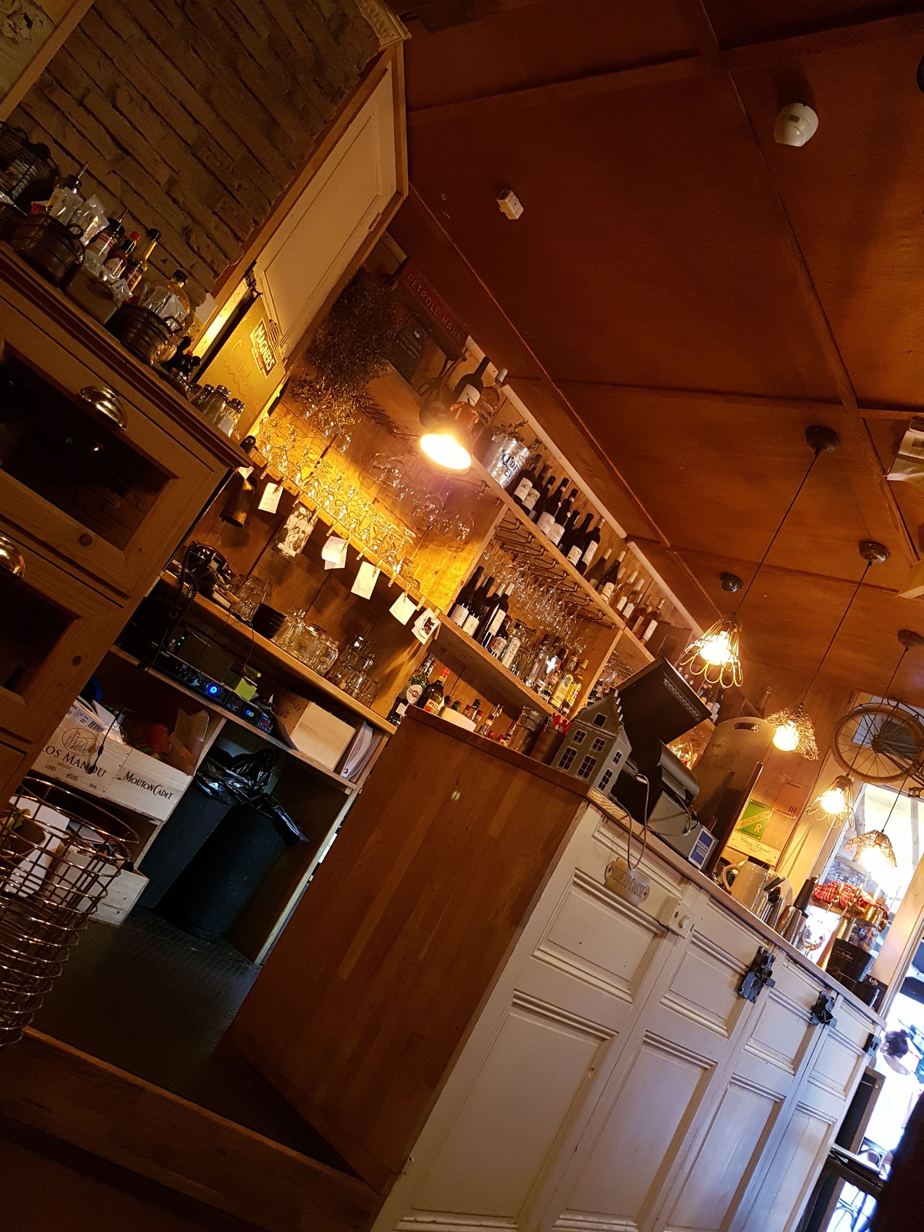Personnel sympathique et efficace. Bonne ambiance à l'intérieur comme à l'extérieur. Joli bar traditionnel. Bon point de rassemblement social pour les apéritifs. Gamme de snacks et d'assiettes qui accompagnent bien les boissons. Délicieux. Tout à un prix raisonnable. Service avec le sourire