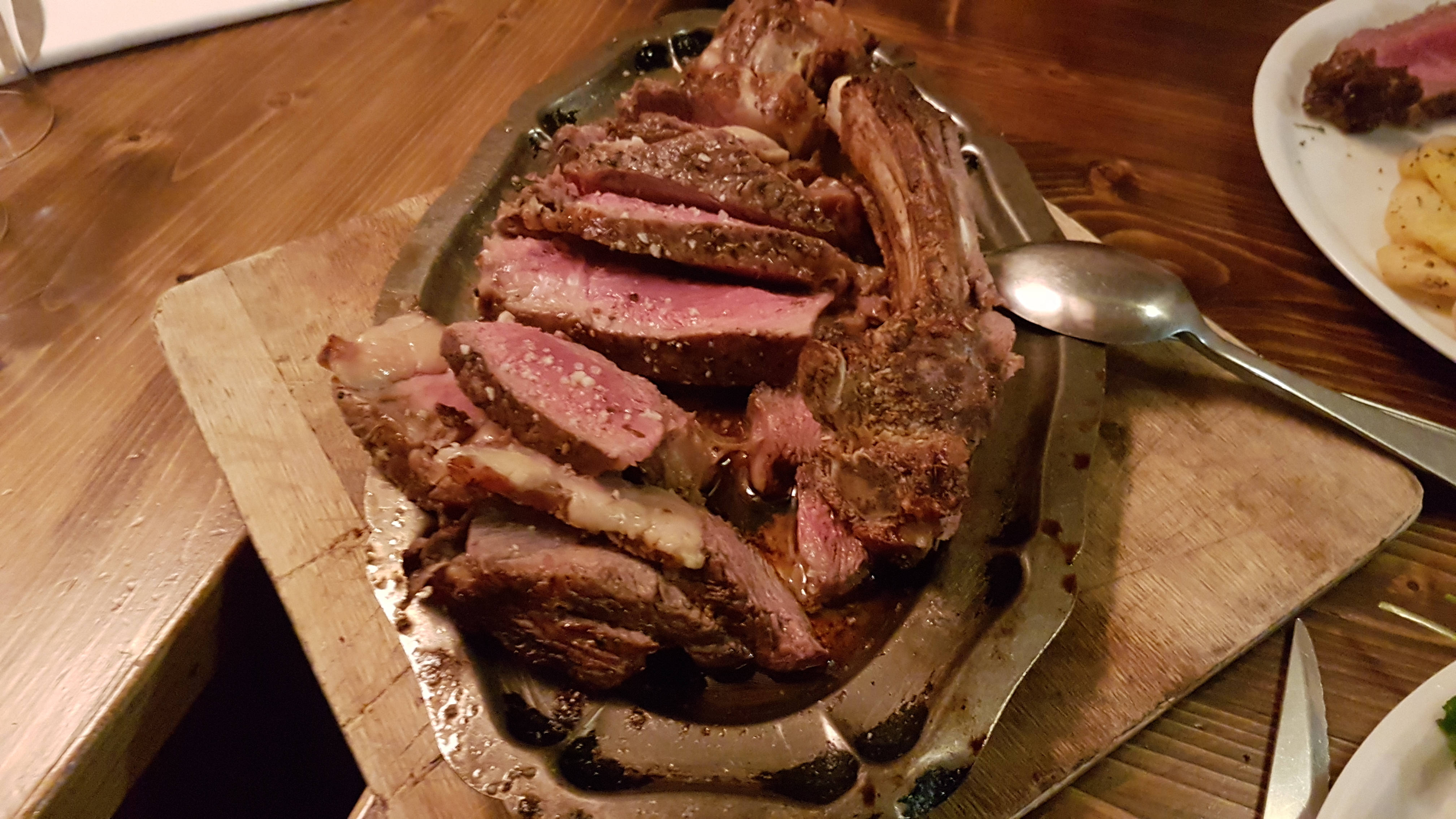 Menu à 32 euros , côte d agneau grillé au feu de bois excellente,repas très copieux.