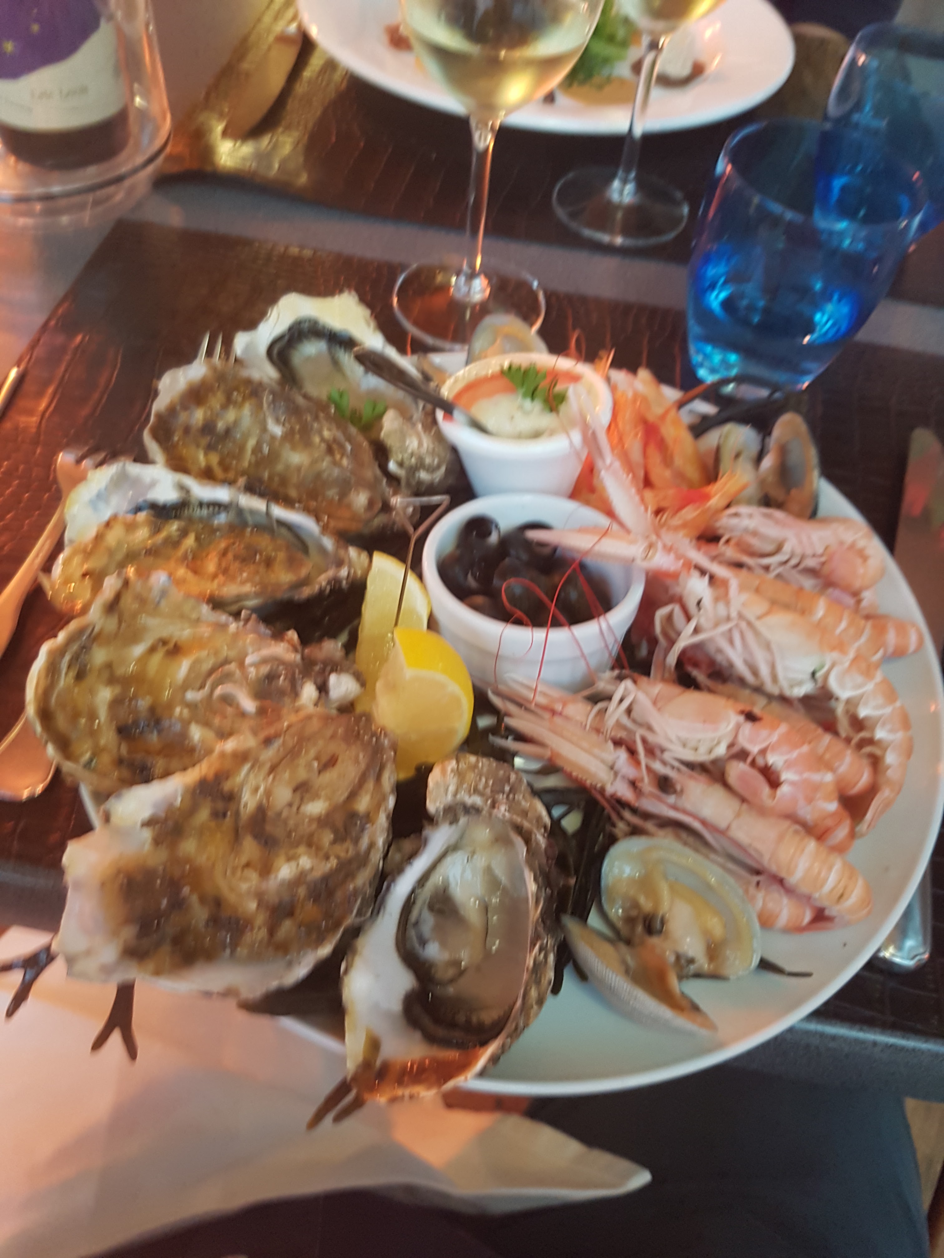 Fruits de mer frais incroyables. Personnel incroyablement gentil. Après 5h30 de route de Paris, c'est merveilleux de déguster d'aussi bons fruits de mer. J'ai eu une assiette de poisson cru, les huîtres étaient mémorables. Ma femme Searay dans une sauce à base de câpres. Carte des vins intéressante également. Hautement recommandé.