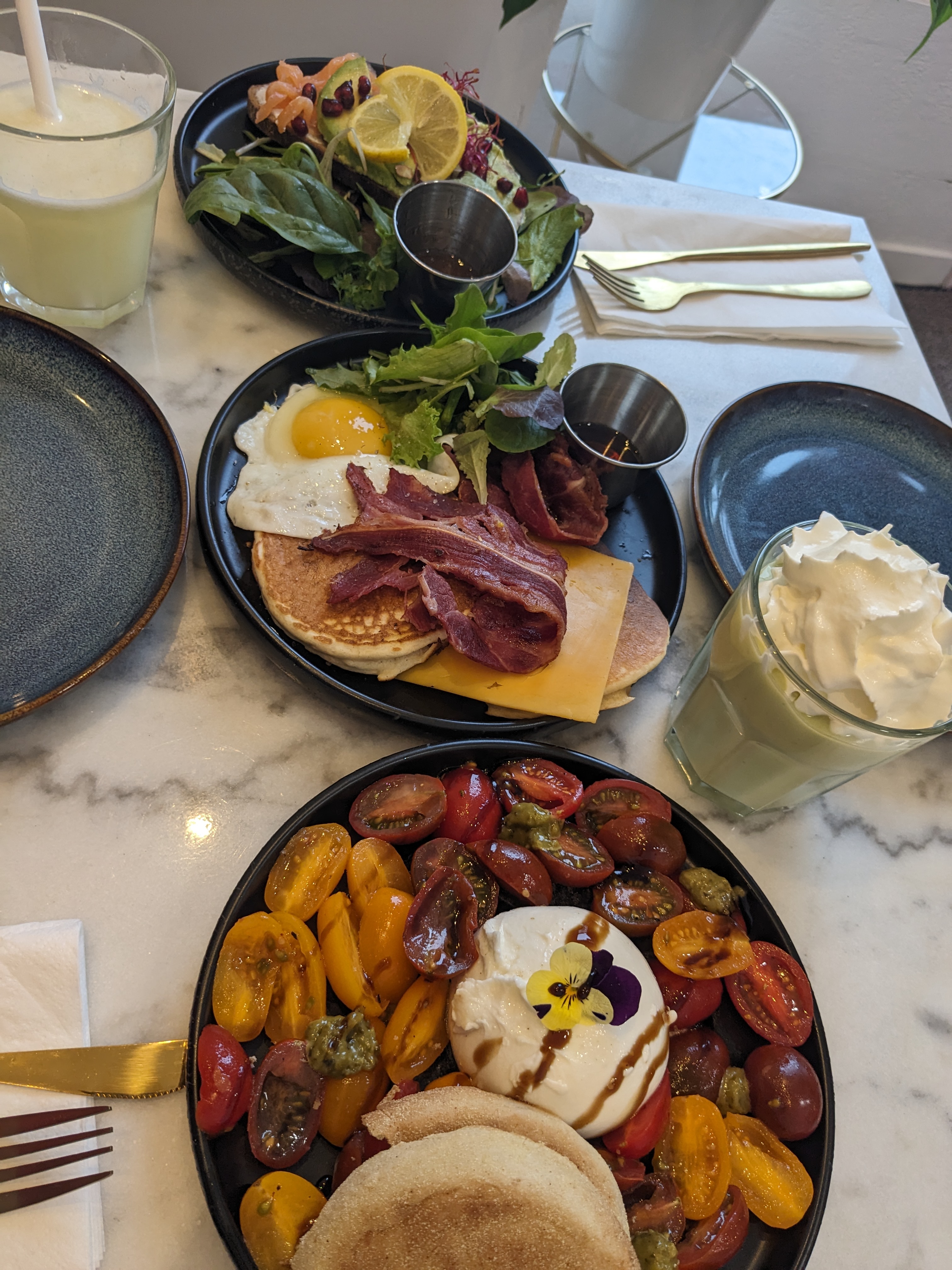 Beaucoup de choix, très rapide pour être servi. C’était très très bons j’avais pris la formule original avec la burrata et les pancakes fruits rouges. C’était excellent. On a été très bien accueilli serveuses très agréables.
