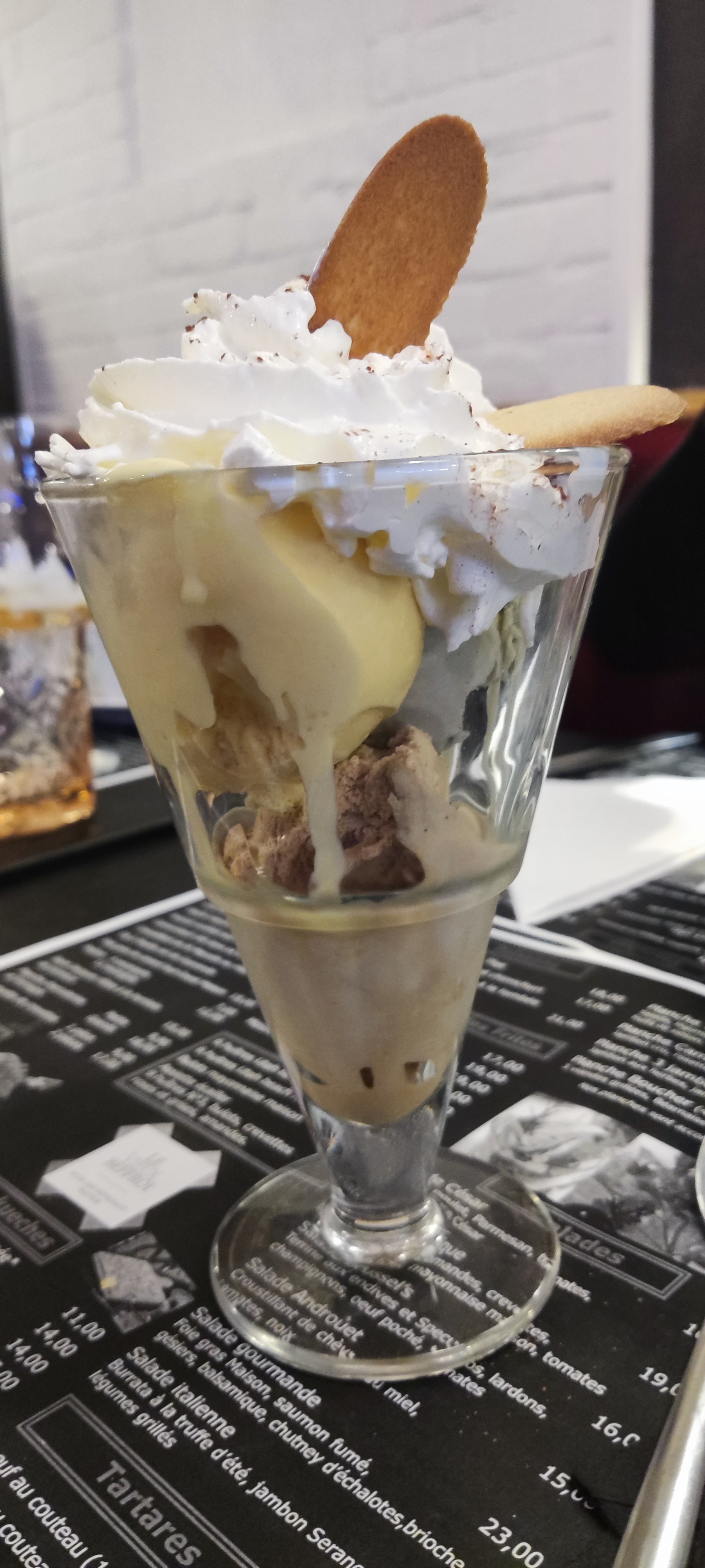 Personnel accueillant, endroit sympa pour une soirée en terrasse 👍. respect des mesures sanitaires 😉. Chocolat liégeois et crème brûlée appréciés 🤤.