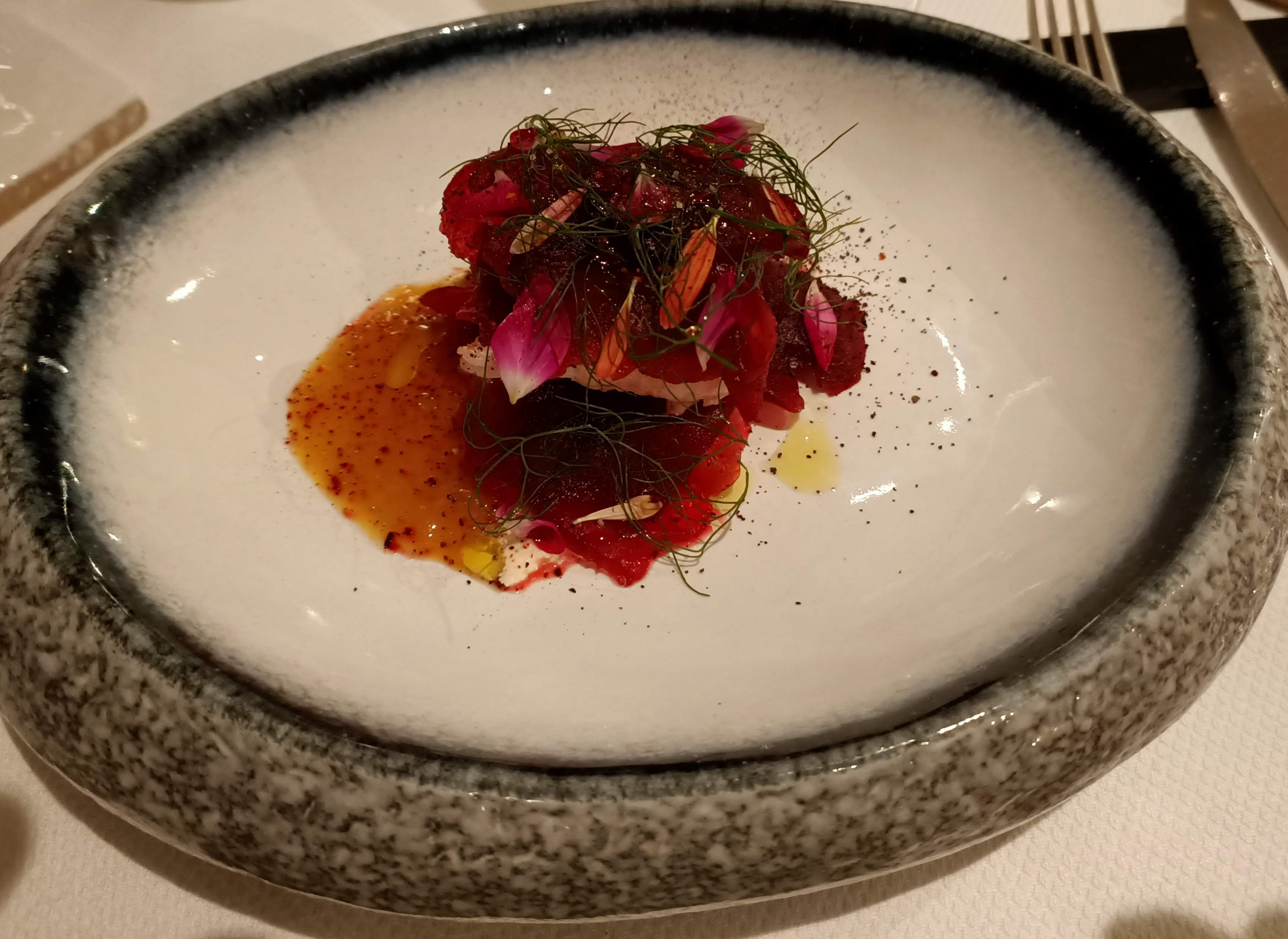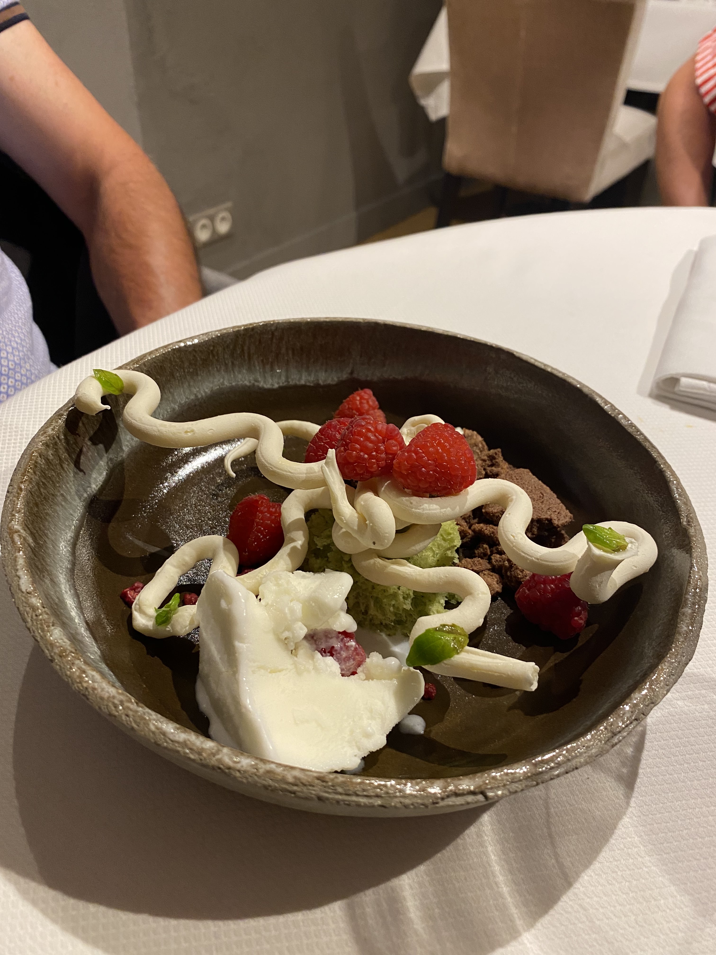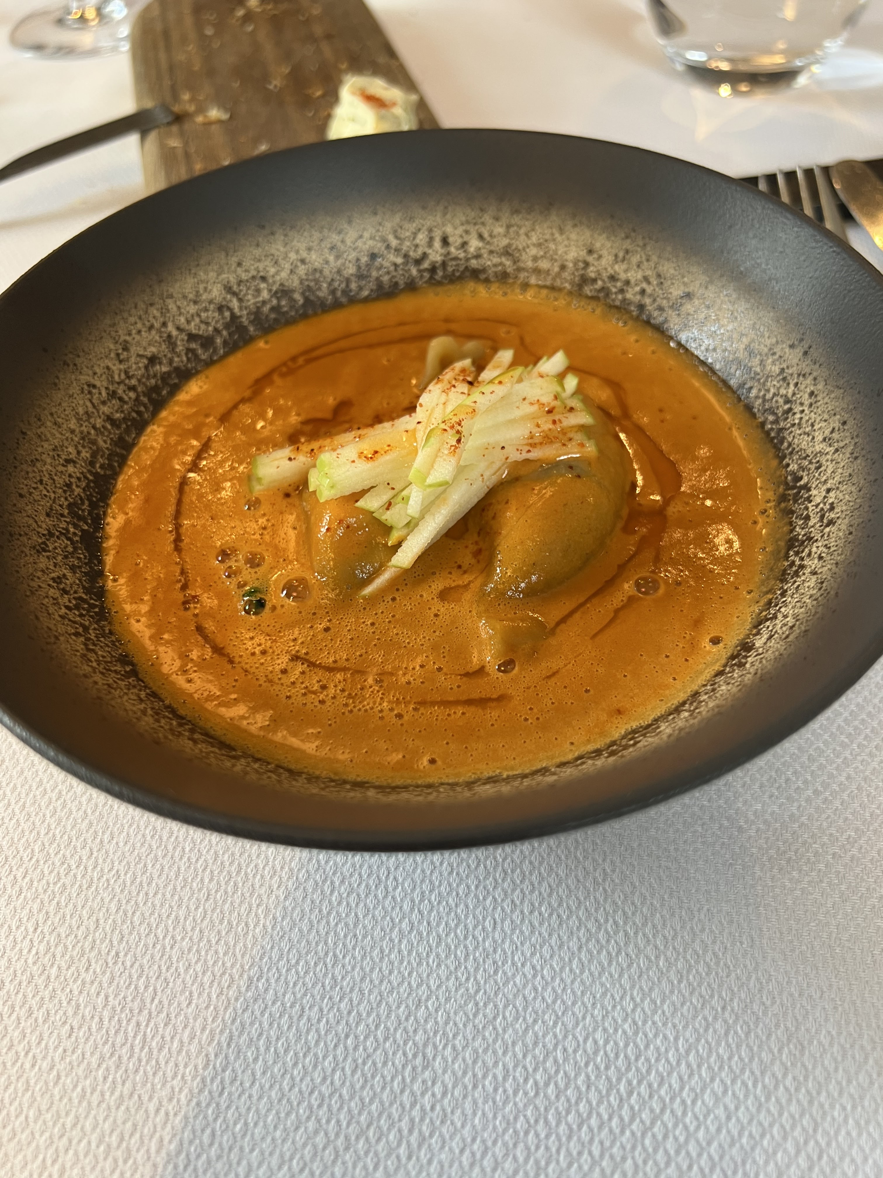 Bel endroit, carte alléchante, plats soignés mais au total c’est un peu juste par rapport à la promesse. Une très bonne entrée, un plat principal un peu banal et un bon dessert. Trop peu de choix de vin au verre. Il ne faut pas être trop exigeant de ce côté. Pour finir, une ambiance un chouïa pesante du fait d’un service un peu too much. Dommage, même si nous étions ravis de tester une nouvelle adresse !