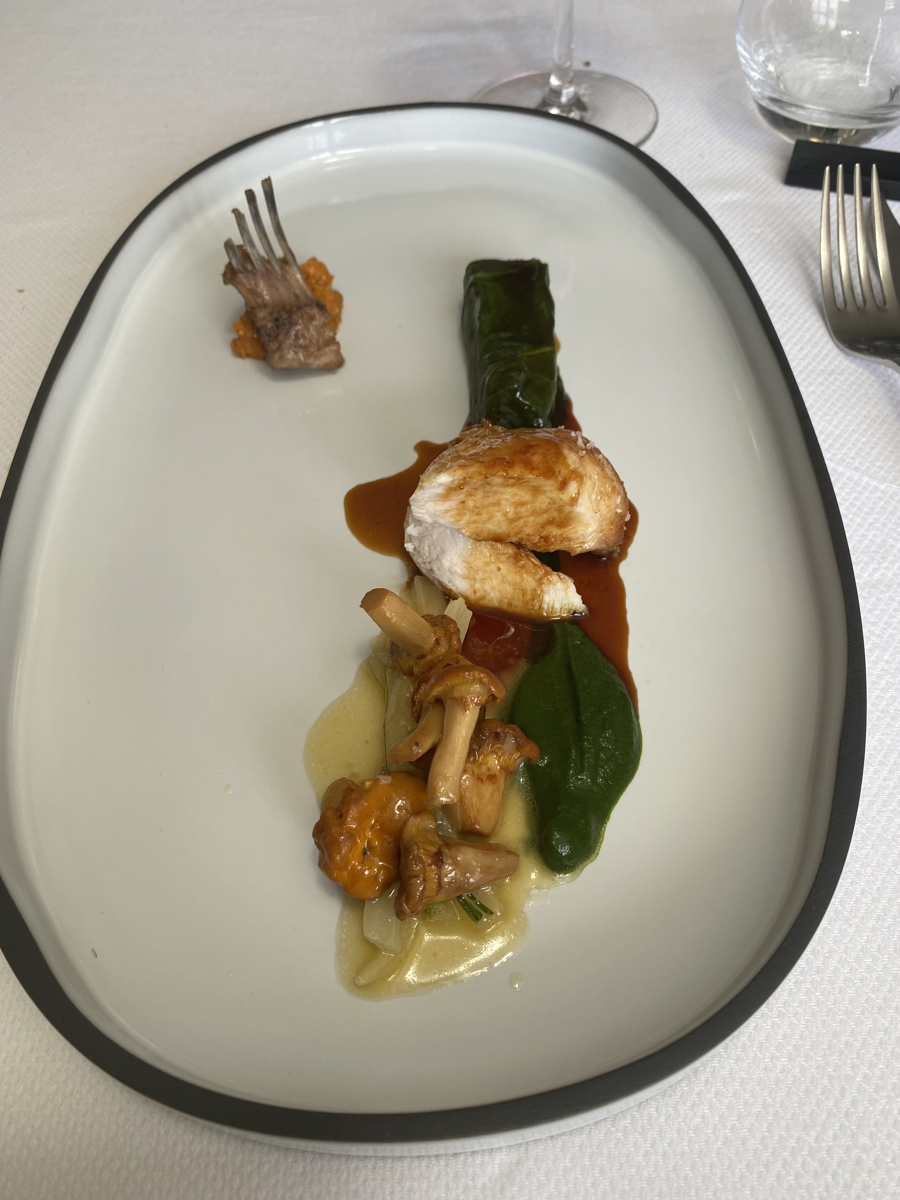 Nous avons passé une très bonne soirée. Malgré la grande qualité des produits et la raffinement des plats (tout particulièrement des deux entrées), il y a une relation distante (volontaire ?) avec le client qui engendre une atmosphère très peu chaleureuse et tout à fait impersonnelle. Asperges exceptionnelles, ravioles de homard sublimes, cochon excellent, fromage chèvre rhubarbe manque de relief, soufflé aux noisettes dingue.