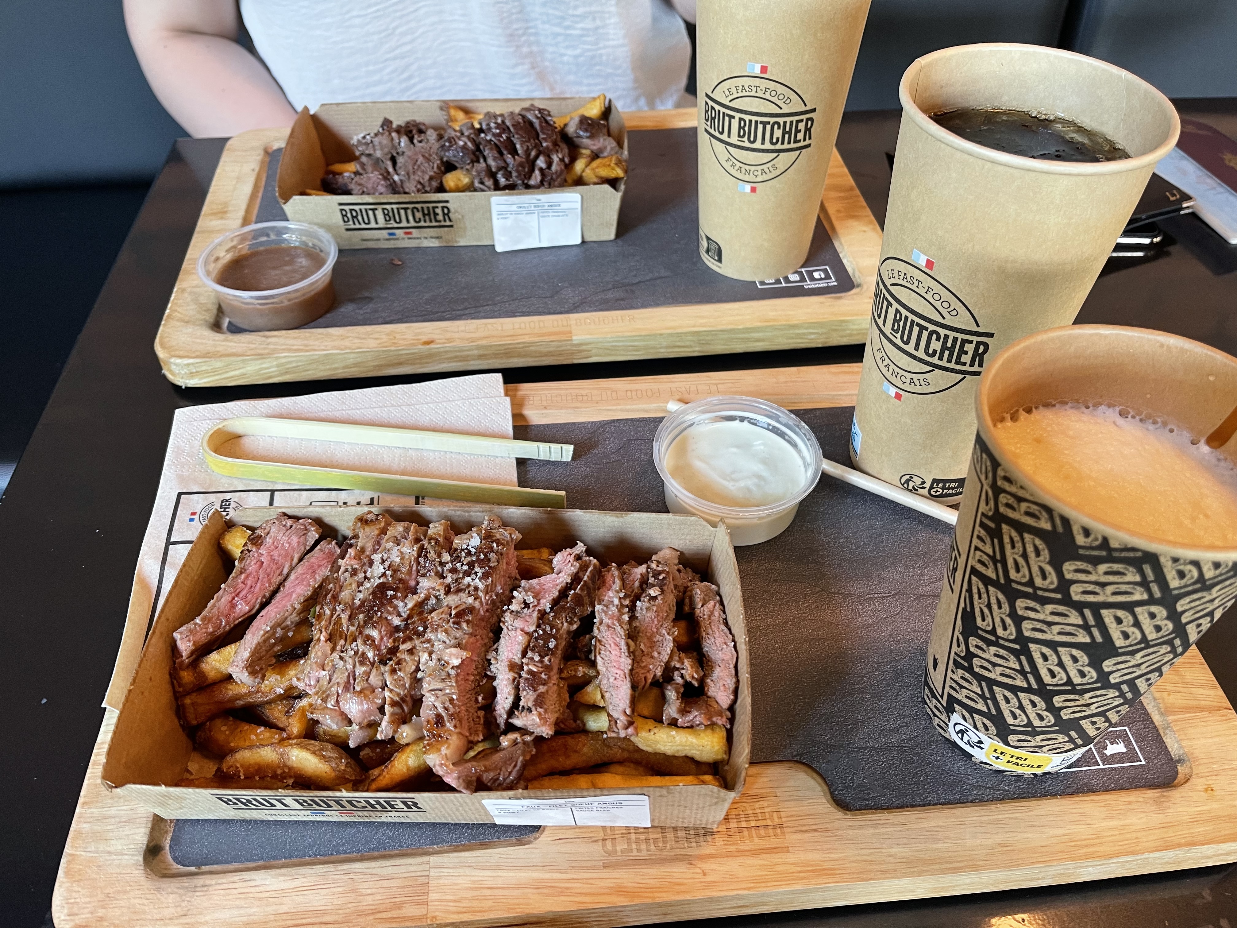 Quelle déception quand nous avons vu l’état de nos burger! Supplément chèvre limite inexistant, de la bouillit de tomate, burger hyper sec en bref rien d’exceptionnel, et pour le prix je trouve cela très très très limite. Nous avions déjà manger au brut butcher 2 fois au paravant sans avoir de problème mais après ce repas nous n’y avons plus jamais été. Une amélioration pourrait être apporté.