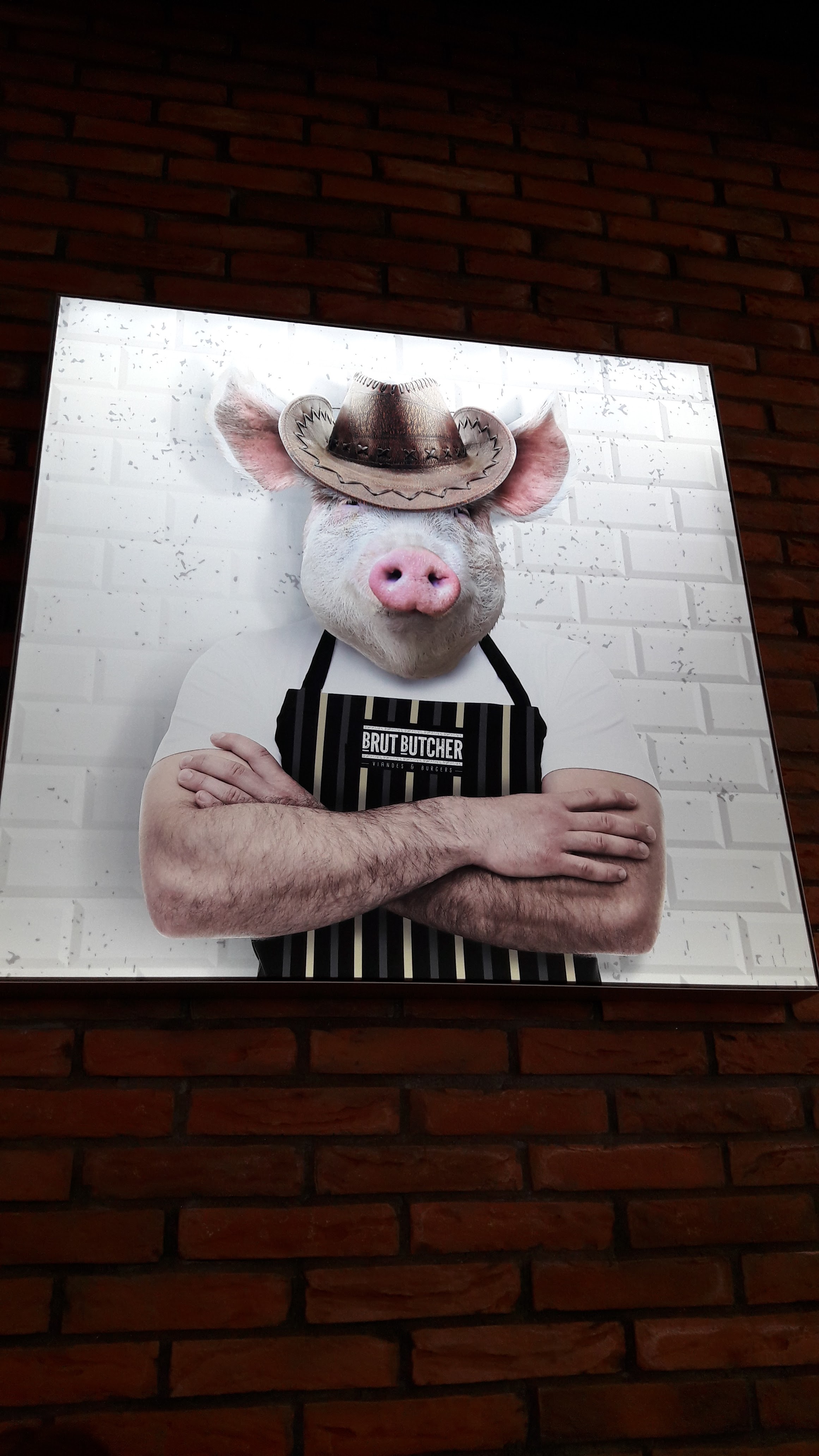 BURGER pas mauvais , concept pas mal , pouvez vous m expliquer pourquoi on a des cadres photo avec des corps humains et la tête des animaux qu on peut déguster en BURGER ? Même si on sait ce qu on mange on a pas envie de voir des tableaux avec des têtes d animaux , encore moins celles dans notre assiette .