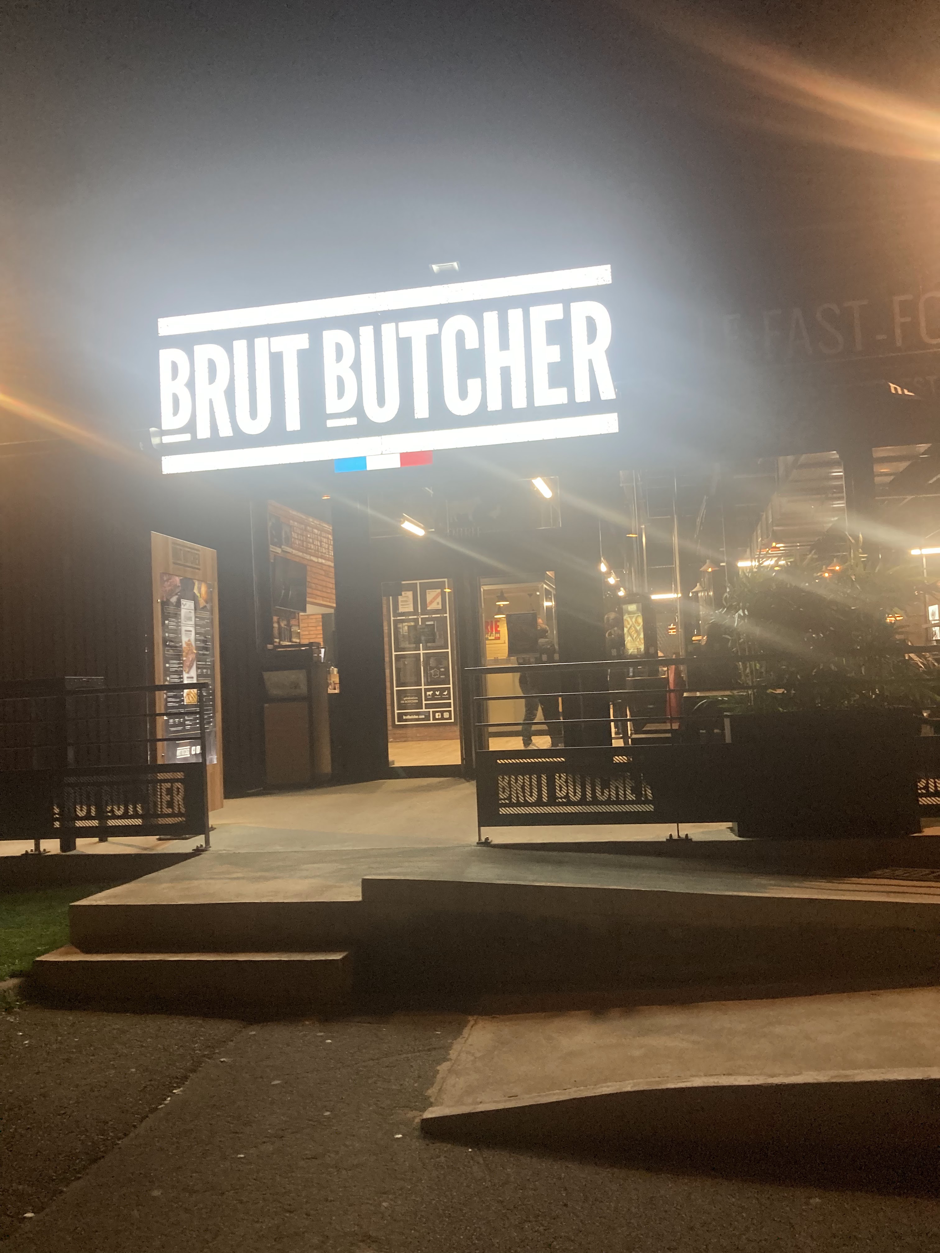 Brut Butcher est un fast-food qui ma vachement surpris. C'est un lieux paisible et agréable, les menus sont très attirantes, on a une variété de choix pour tout les goûts. (des choix de viande, des suppléments et des sauces) L'intérieur est chaleureux et assez spacieux, il est possible de s'installer confortablement sur les canapés disposés en mangeant notre Burger 🍔. Les restaurateurs sont très accueillantes il n'y a rien a dire , je dirais même que je les préfères aux restaurateurs de fast-food général. Un espace de détente est présente dans l'établissement, cela permet d'occuper les enfants mais aussi les ados et plus avec un arcade présent dans la pièce. Malgré un service agréable et une restauration très étonnant, j'ai pu remarquer des défauts minime comme par exemple la quantité de frites qui est un peu infime mais excellent , le temps d'attente qui est un peu dérangeant pour des personnes comme moi qui ont un grand appétit et enfin les desserts qui pour mon avis n'est pas très séduisant. En bref, Brut Butcher est un très bon fast-food, que sa soit pour ses Burgers, ses Viandes , ses locaux, etc. Il fait bon vivre dans l'établissement et je compte y aller plus souvent.