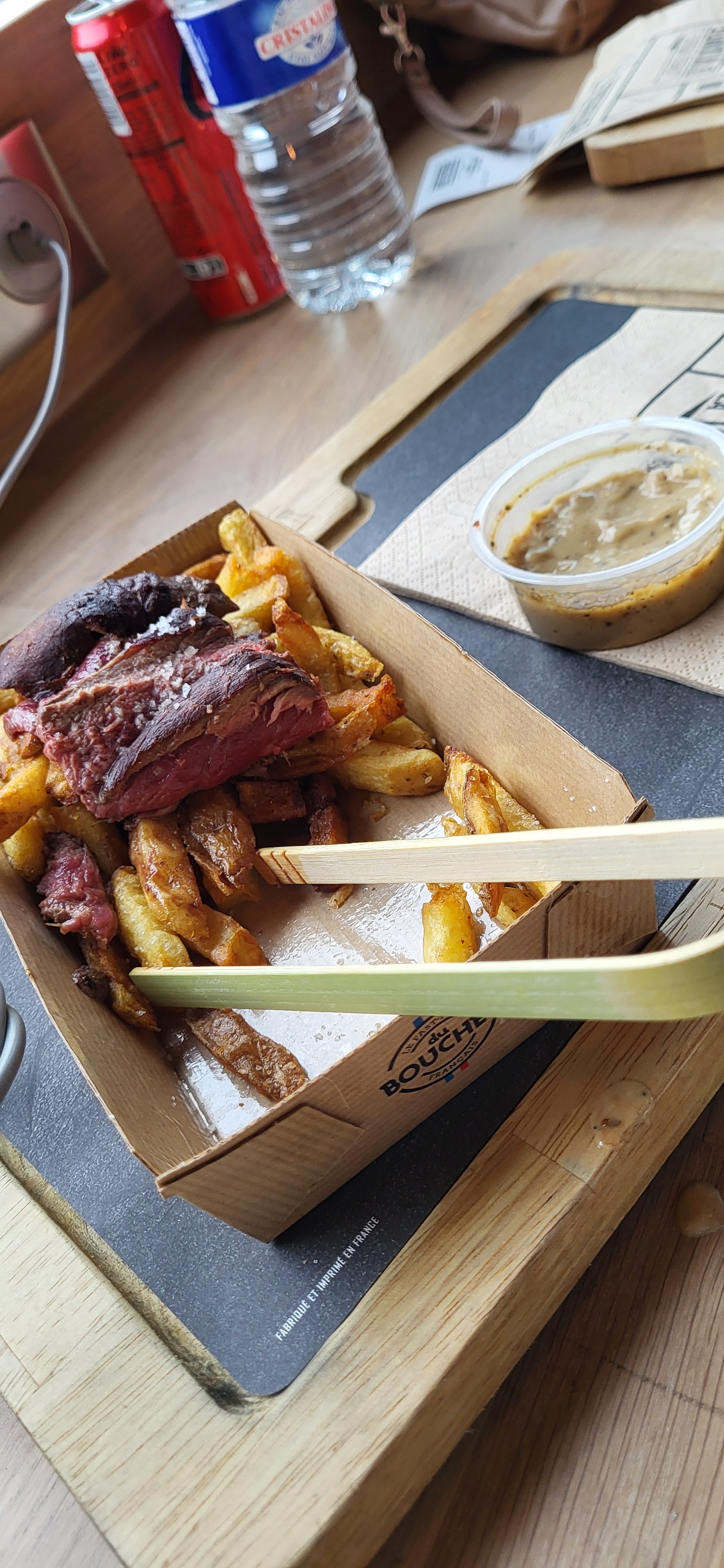 Je trouve que c'est un peu cher pour de la restauration rapide. Mais comparé aux autres c'est cohérent. Si on a le temps , si c'est pour manger de la viande rouge (charolais ou autre) je recommande d'aller manger dans un vrai restaurant... ...privilégions les artisans Car un steak prédécoupé en 10 bouchées posées sur un lit de frites croustillantes et un bol de salade verte pour un total de 17e Même si c'est mieux qu'un plat de nuggets frites C'est cherôt