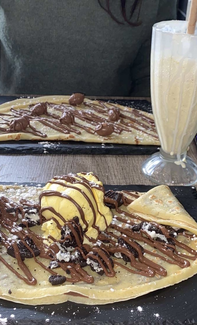 Milkshake et crêpe au Nutella livrée avec delivrero en plaine journée de chaleur et pourtant le Milkshake et resté froid et agréable a boire. Les produits était conforme a se que je m'attendais niveau goût. Je recommande.