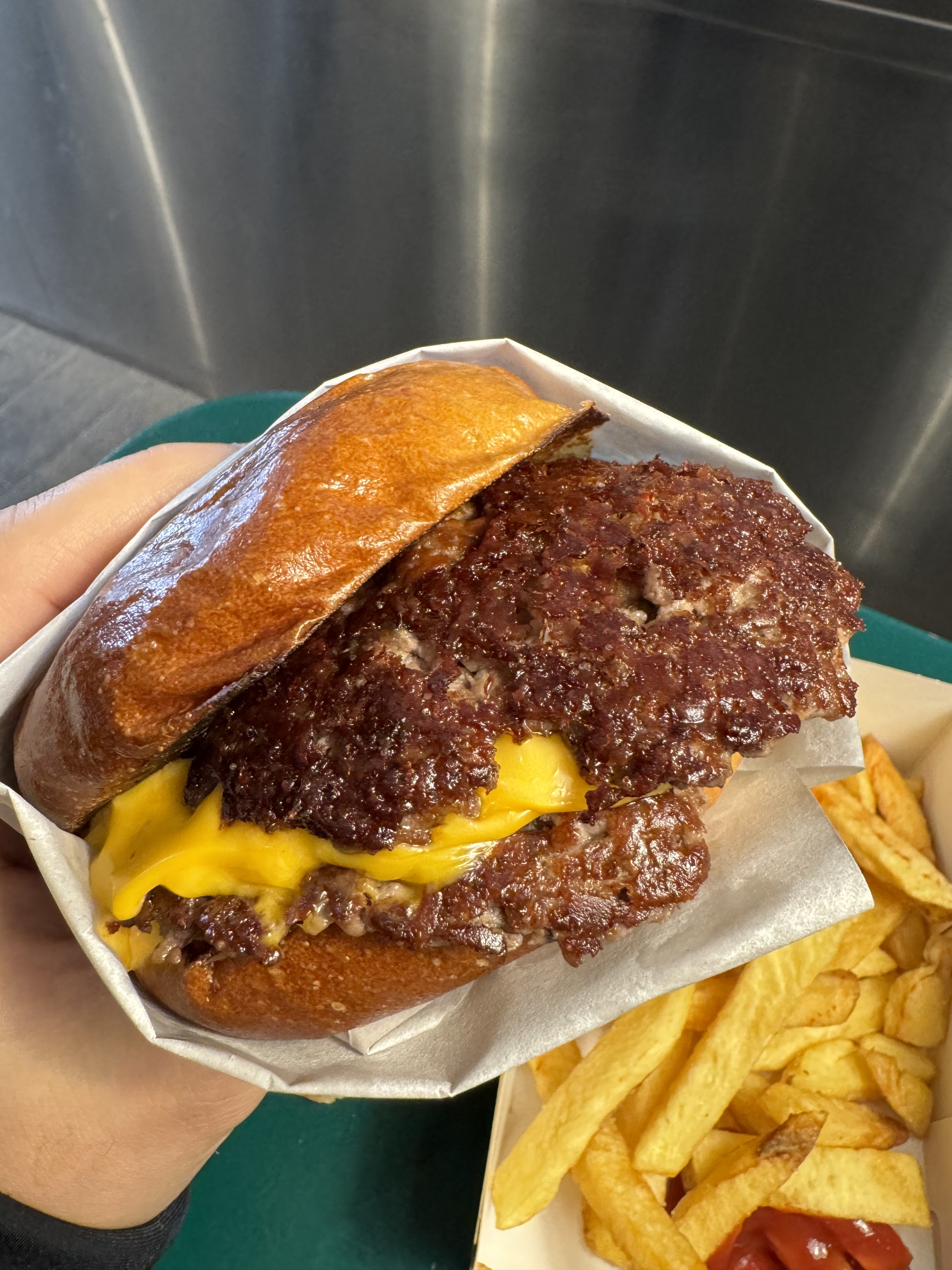 Burger smash incroyable! Le pain était si savoureux et moelleux, tout comme la viande. Les frites sont également très bonnes. Merci!