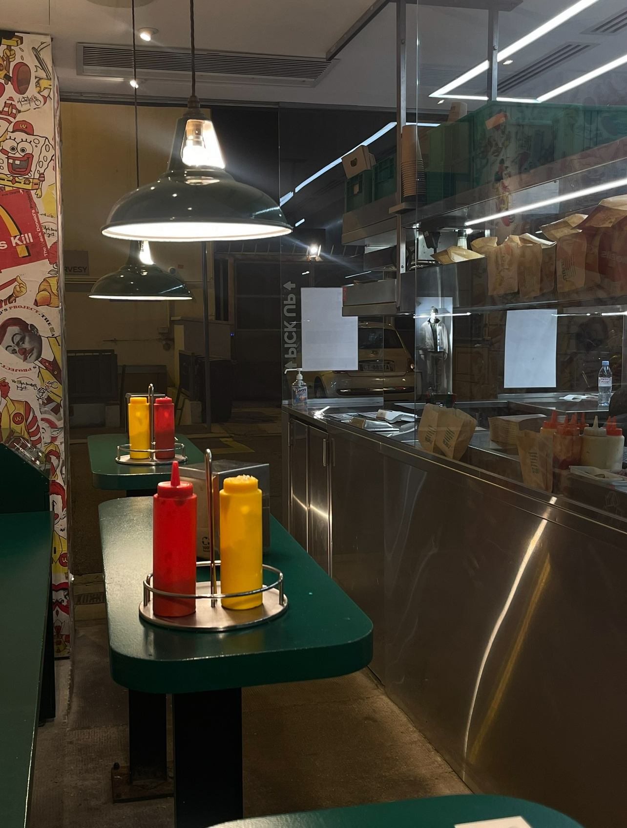 La nourriture est excellente et les gars font un excellent travail mais ce n'est pas hygiénique à 100%. Les bouteilles de ketchup ne sont pas propres et nous y étions lorsque le restaurant vient d'ouvrir. Le propriétaire du magasin a aidé à préparer un hamburger quand il y avait beaucoup de monde, mais il ne s'est pas lavé les mains après avoir récupéré l'argent ou la monnaie :(