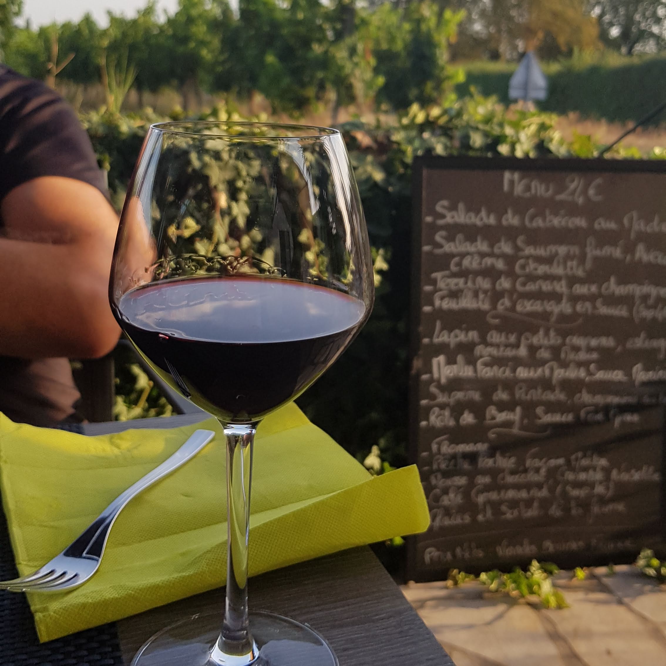 Sur les conseils de notre hôte, Sylvette (chambre d'hôtes A l'olivier à Montcaret). Restaurant au coeur des vignes dans un petit village perché. Cadre magnifique (en intérieur car pour la terrasse, très prisée, il faut réserver encore plus tôt..). Plats de qualité, cuisine des produits extra frais, menu accessible à 24 euro (le menu était différent de celui du site, idem commentaire précédent). Vins du village même (un bergerac rouge à 17,5€!). Menu enfant à 8 €. Ce restaurant vaut vraiment le détour.