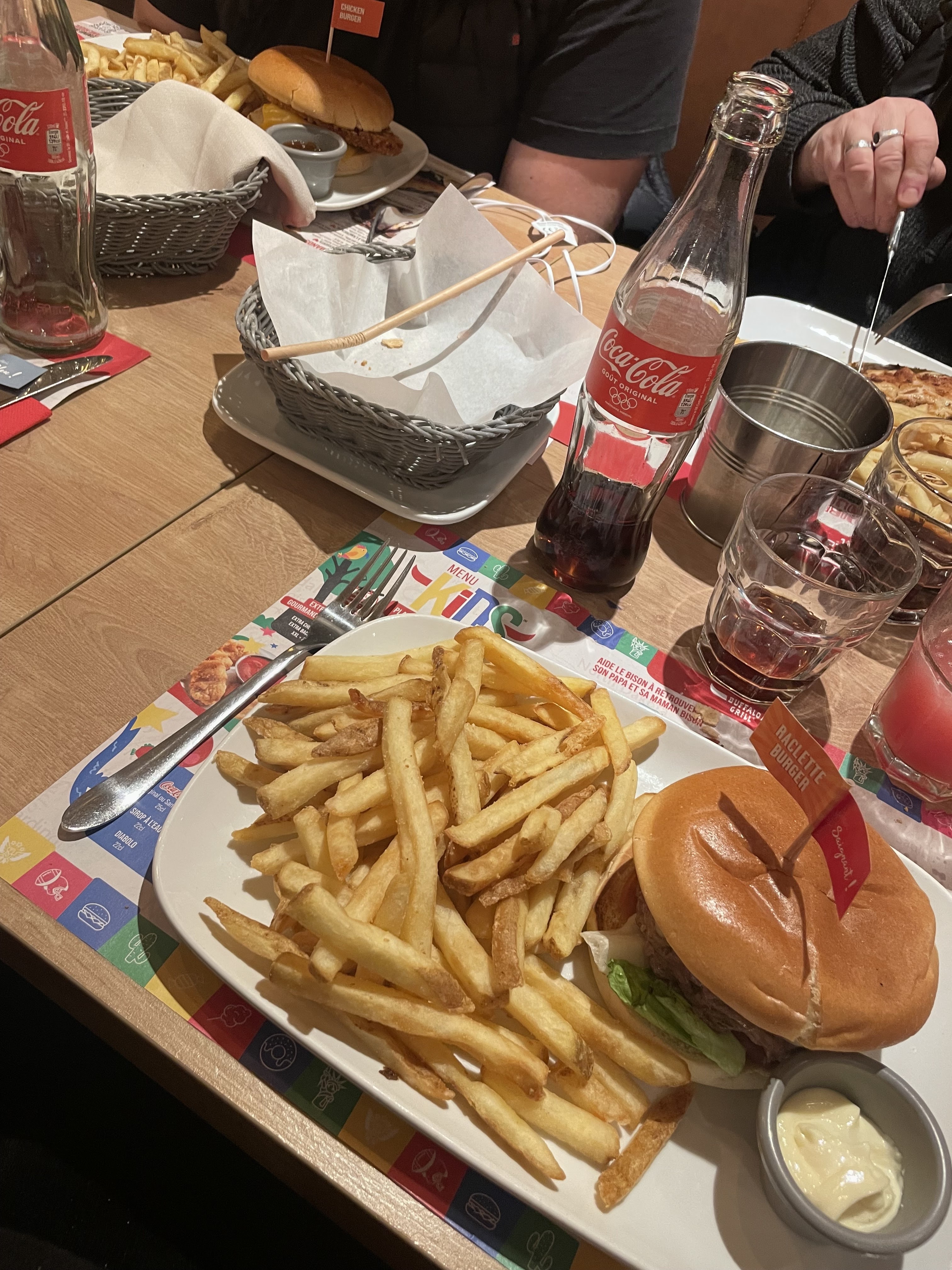 Une superbe serveuse Je demande frites cheddar elles sont finalement à la raclette ... Nous avons eu nos plats tard donc froids et en + on les a eu avant notre fils. Qui du coup n'a pas mangé son menu enfant, arrivé froid et tardivement. Ambiance pourrie en cuisine, l'un des cuisiniers est parti en plein service et une femme d'un certain âge très désagréable est venue leur crier dessus, alors qu'ils étaient clairement dépassés.... Au vu des commentaires c'est régulier.... Une petite remise en question non ? Courage au personnel de service !