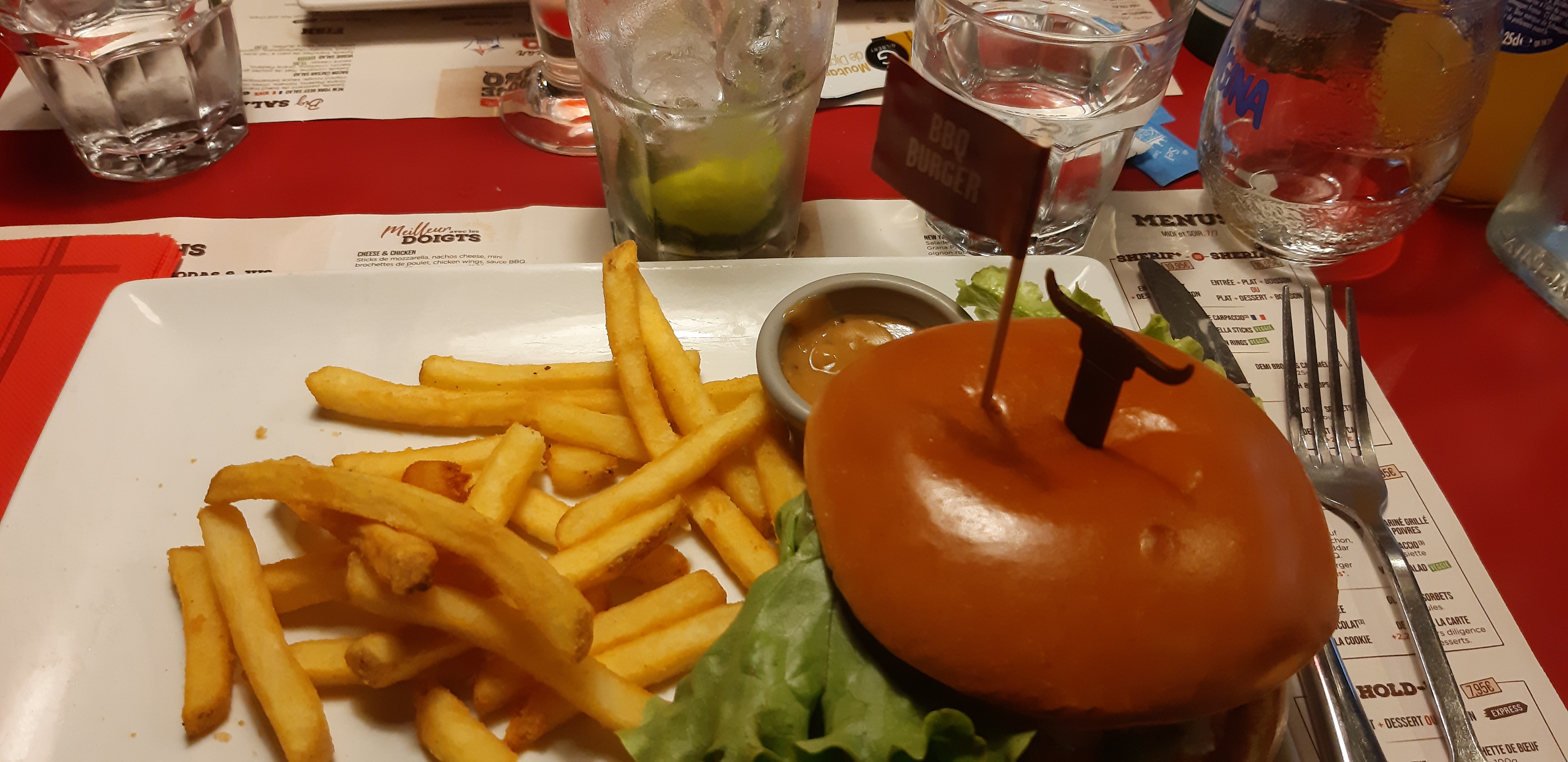Ambiance sympa, style américain. Service agréable et très disponible. La petite salade de bienvenue en amuse bouche est très appréciable. Je recommande les ribs.