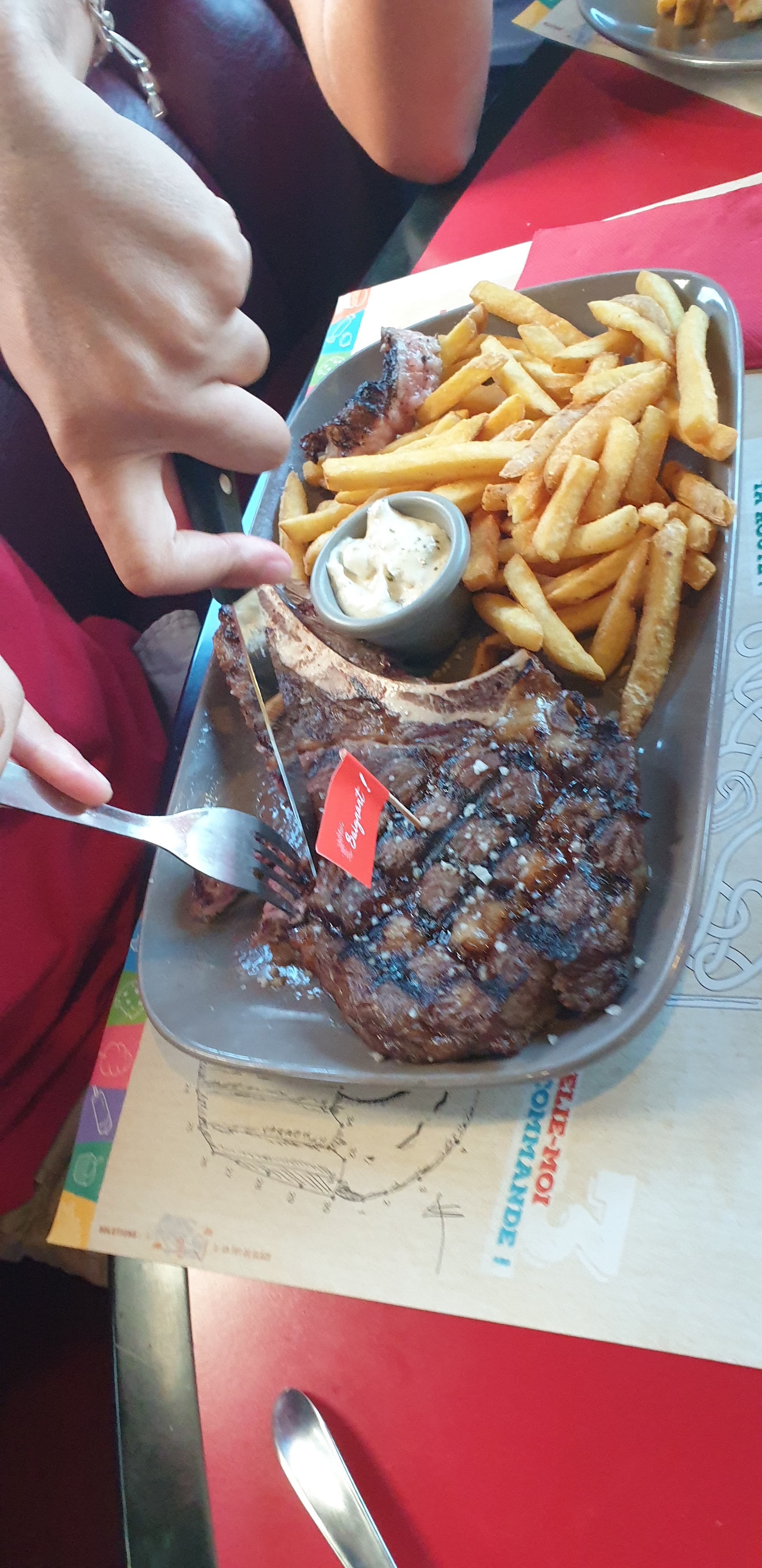 Alors heureusement nous avons eu une jeune serveuse, Manon, positivement FORMIDABLE. À l'arrivée nous n'avions pas de masques, indispensables à la circulation dans l'établissement. Soit. Nous sommes allés les chercher, c'est normal. Sauf que PERSONNE une fois à l'intérieur ne respecte la règle..... mais ça encore, passe. Mais c'est agaçant. L'entrecôte de mon mari mal cuite, ma côte de bœuf aussi. Il n'est pas possible de scinder l'accompagnement sauf moyennant finances (moitié haricots verts + moitié salade = il faut payer). Frites froides. Desserts très moyens. Temps d'attente TRÈS conséquent. Le tout pour une certaine d'euros ce qui pour moi est bien trop cher. Bref établissements très très moyen