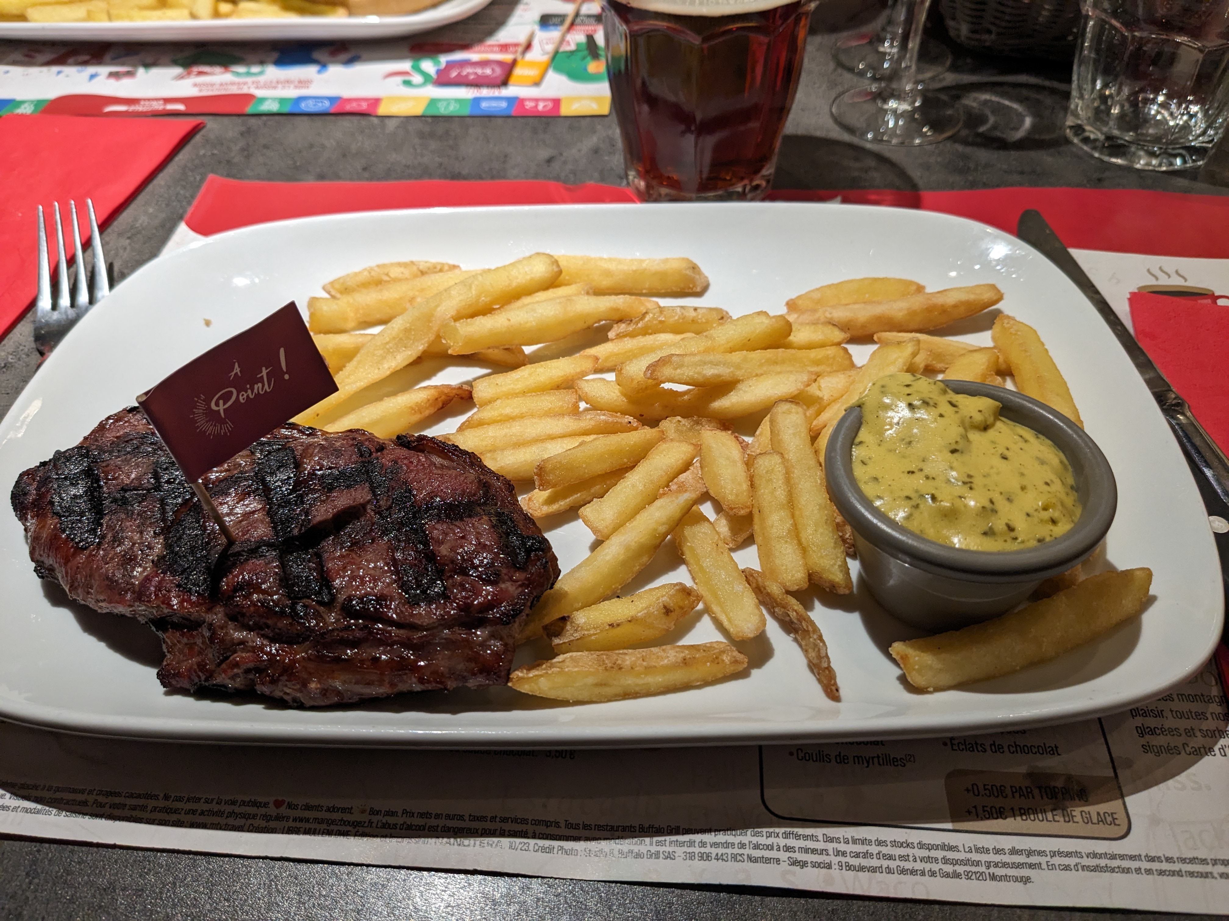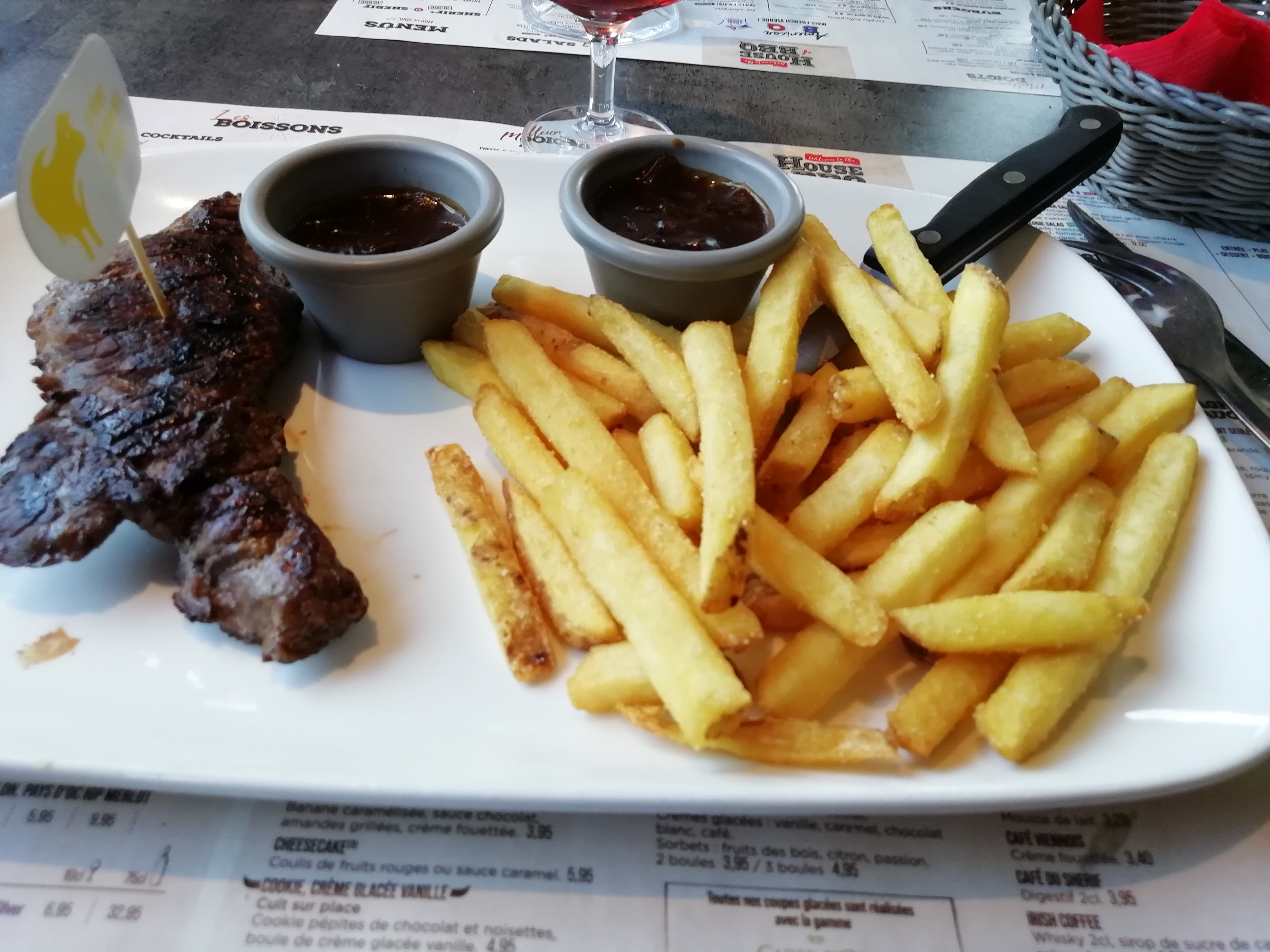 Les frites sont très très bonnes, les serveurs sont sympathiques. Le pain est bon. La décoration et l'ambiance globale est satisfaisante. Je recommande vivement ce restaurant.
