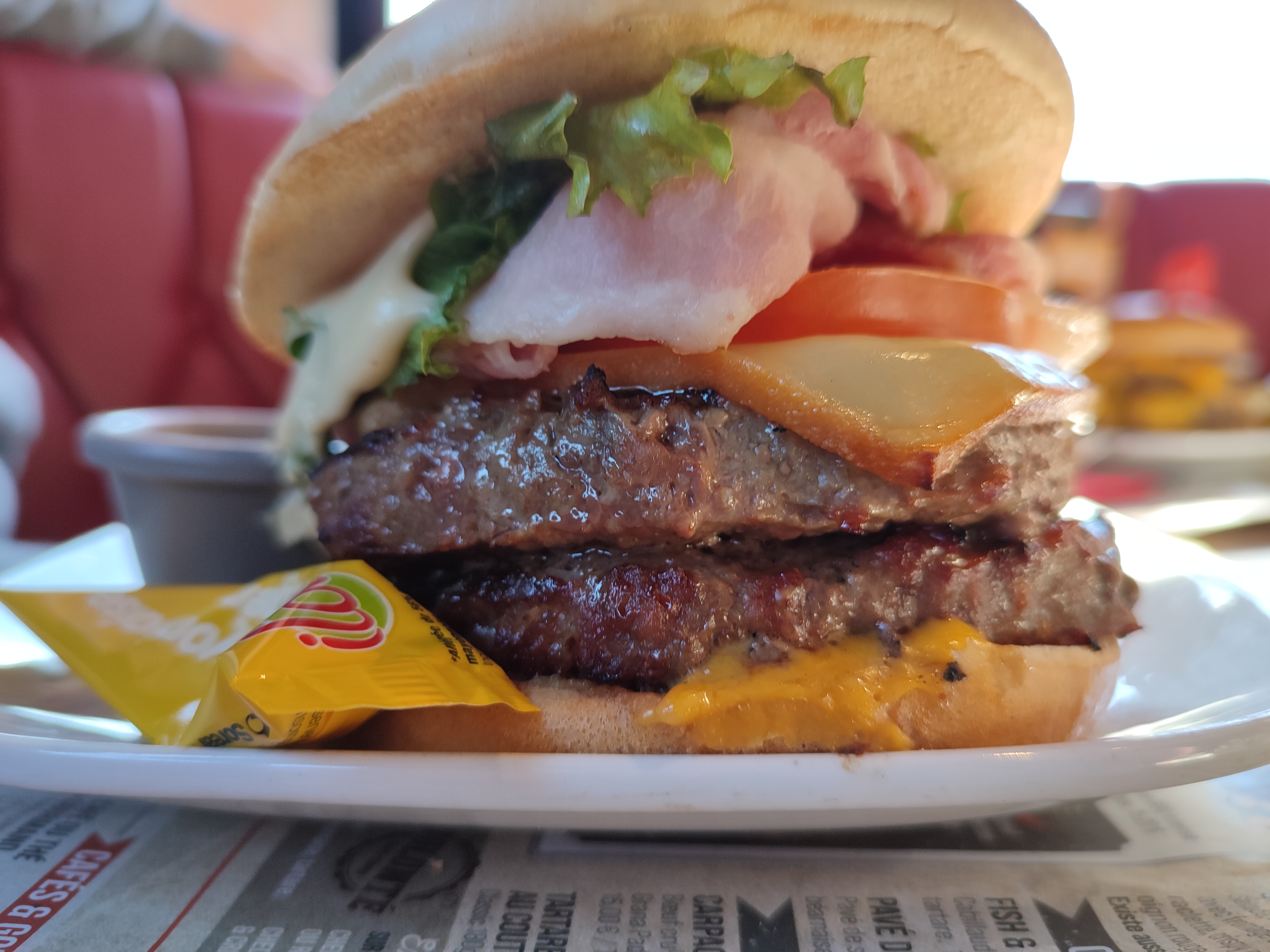 Nous sommes venus un dimanche pour le déjeuner (2 personnes), nous avons bien mangé, malheureusement il y a eu quelques petites « erreurs » lors du repas: erreur dans la commande de boisson, oubli du 1/2 brownie dans la coupe america et oubli de la carafe d’eau … sinon le service était rapide et la cuisson de la viande respecté, hot dog très bon. 💪 je me dis que l’éventuel manque de concentration doit venir de la fatigue de la semaine ^^ on voyait que le serveur qui était en formation faisait de son mieux. On reviendra 😋