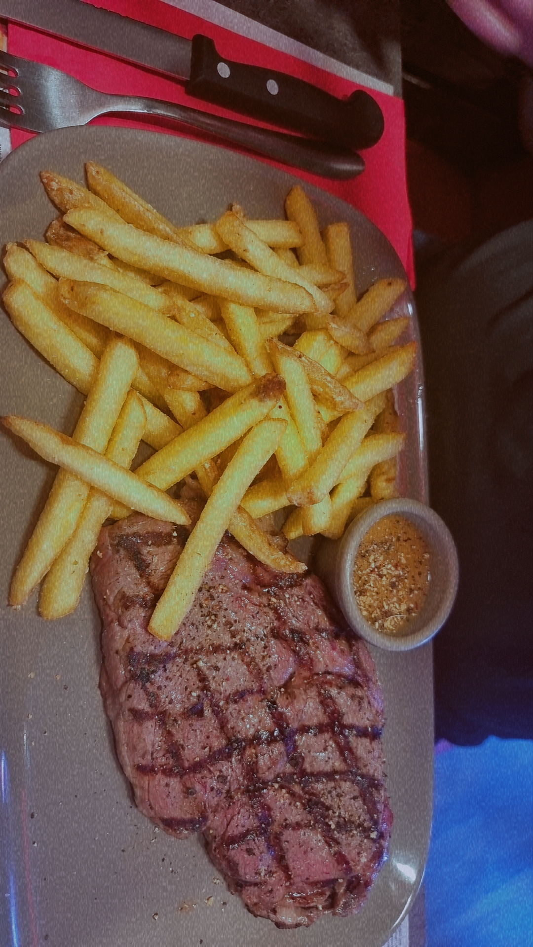 L’endroit est sympa la déco aussi l’accueil et le service aussi après les frites sont pas maisons la viande un peu dur un peu déçu du repas