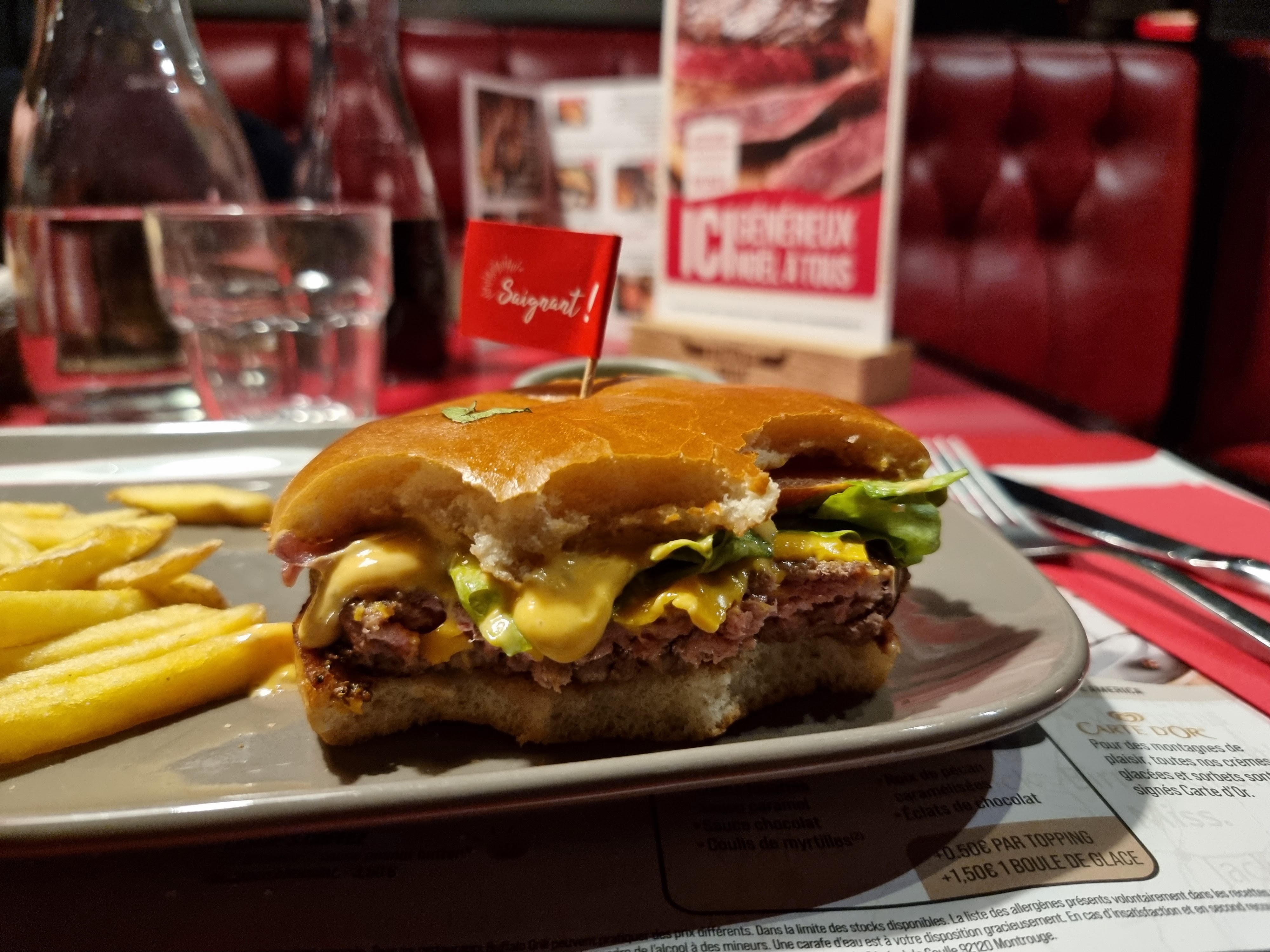 Vraiment pas terrible très cher viande moyenne pas cuit comme demandé Frites petite quantité Dessert moyen Vraiment déçu Je ne recommande pas du tout