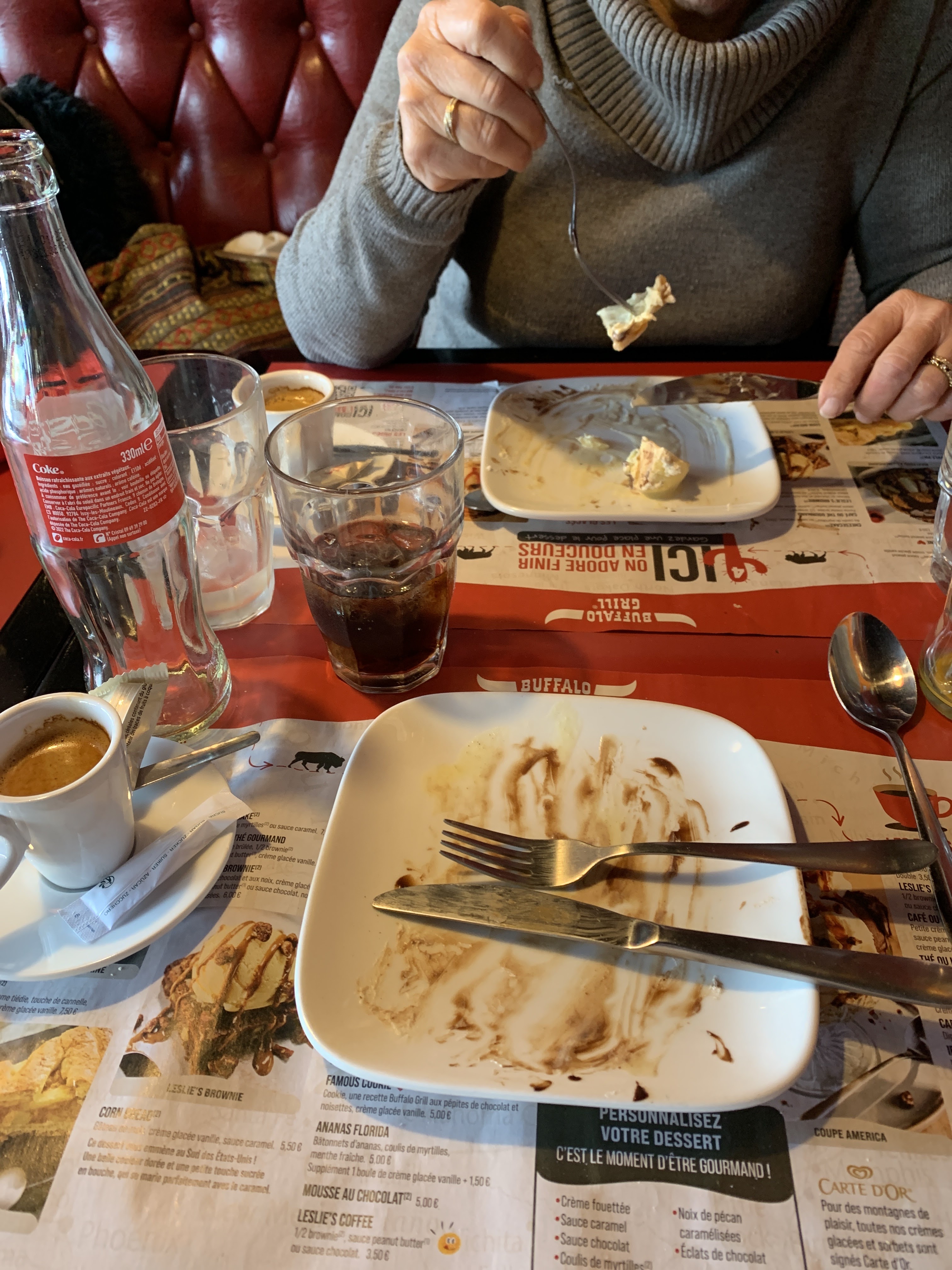 Bonjour Moi qui suit très fan de Buffalo la c'était le pompon. Je n' ai pas pour habitude d émettre de mauvais commentaire..mais je suis bien trop déçue. Pour commencer..temps d attente à l entrée du Buffalo.. pas grave la personne est toute seule on peut comprendre. Ensuite pas de set de table pour voir les menus, obligés de scanner un document qu'on nous a remis au début de l installation à table. Nous choisissons..passons la commande heureusement qu l'on était pas dix personnes car ça prend du temps 😜. Les enfants sont servis avant nous donc on a pas mangé ensemble. Ceci est un détail. Pas trop d amabilité côté service...et au moment du dessert..les plats précédents n étaient même pas enlevés. Comment vous dire ..très déçus je n' ai jamais vécu cela dans un buffalo. Bonne journée