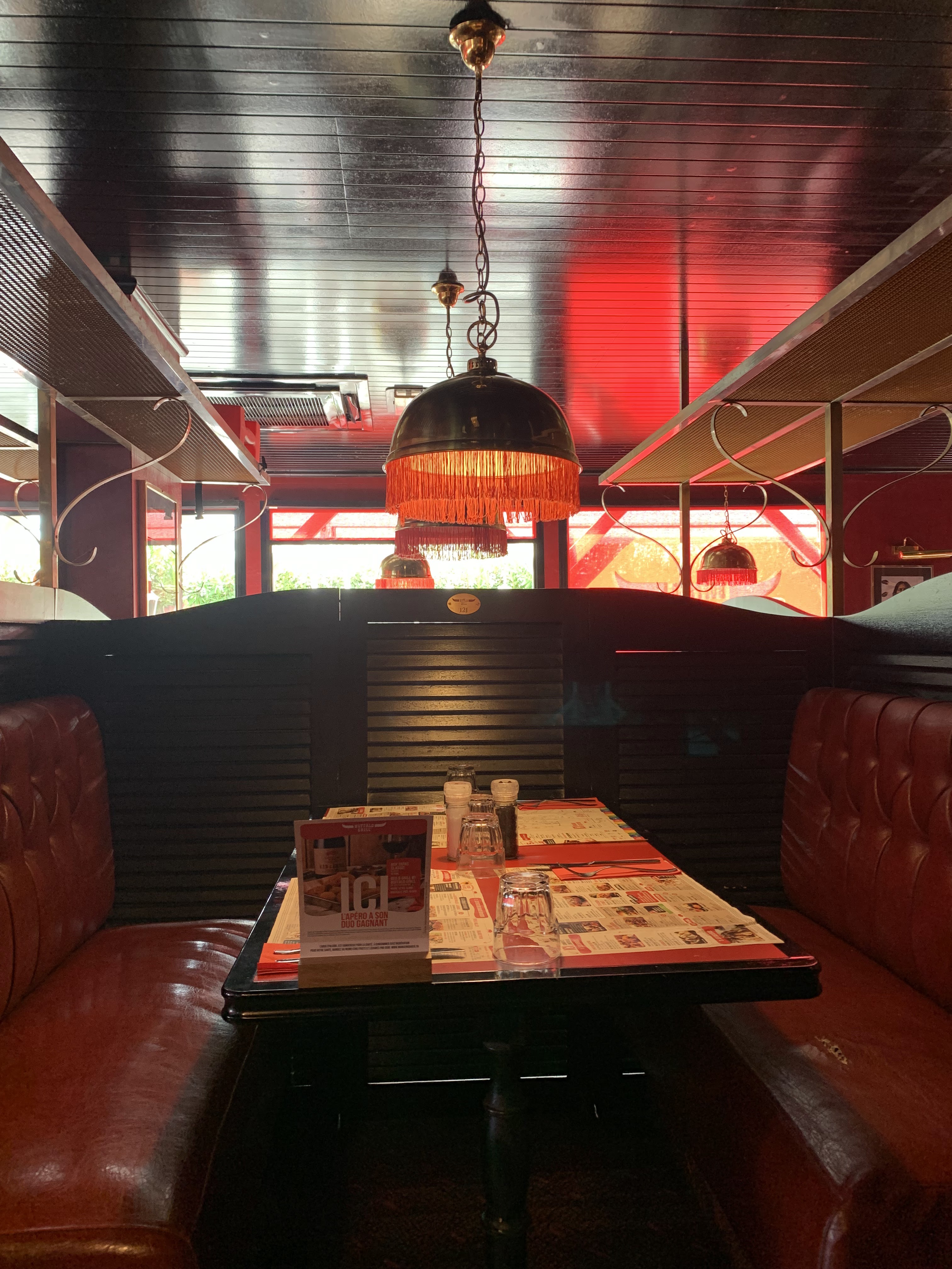 Très mauvaise expérience dans ce restaurant à notre arrivée nous constatons que les couverts sont très sales nous demandons à la serveuse de nous les changer nous levons la tête et voyons les lustres dans un état pitoyable des banquettes nous n'en parlons pas et sanitaire déplorable en gros tout était sale un bon ménage de printemps serait pas négligeable voir même une rénovation car d'autres Buffalo ont été rénovées pourquoi pas celui-ci ? néanmoins le repas était très bon frites viande glace la deuxième serveuse était bien plus souriante que la première je pense que c'était la responsable nous ne sommes pas prêts de retourner dans ce Buffalo car l'hygiène doit être irréprochable dans un restaurant