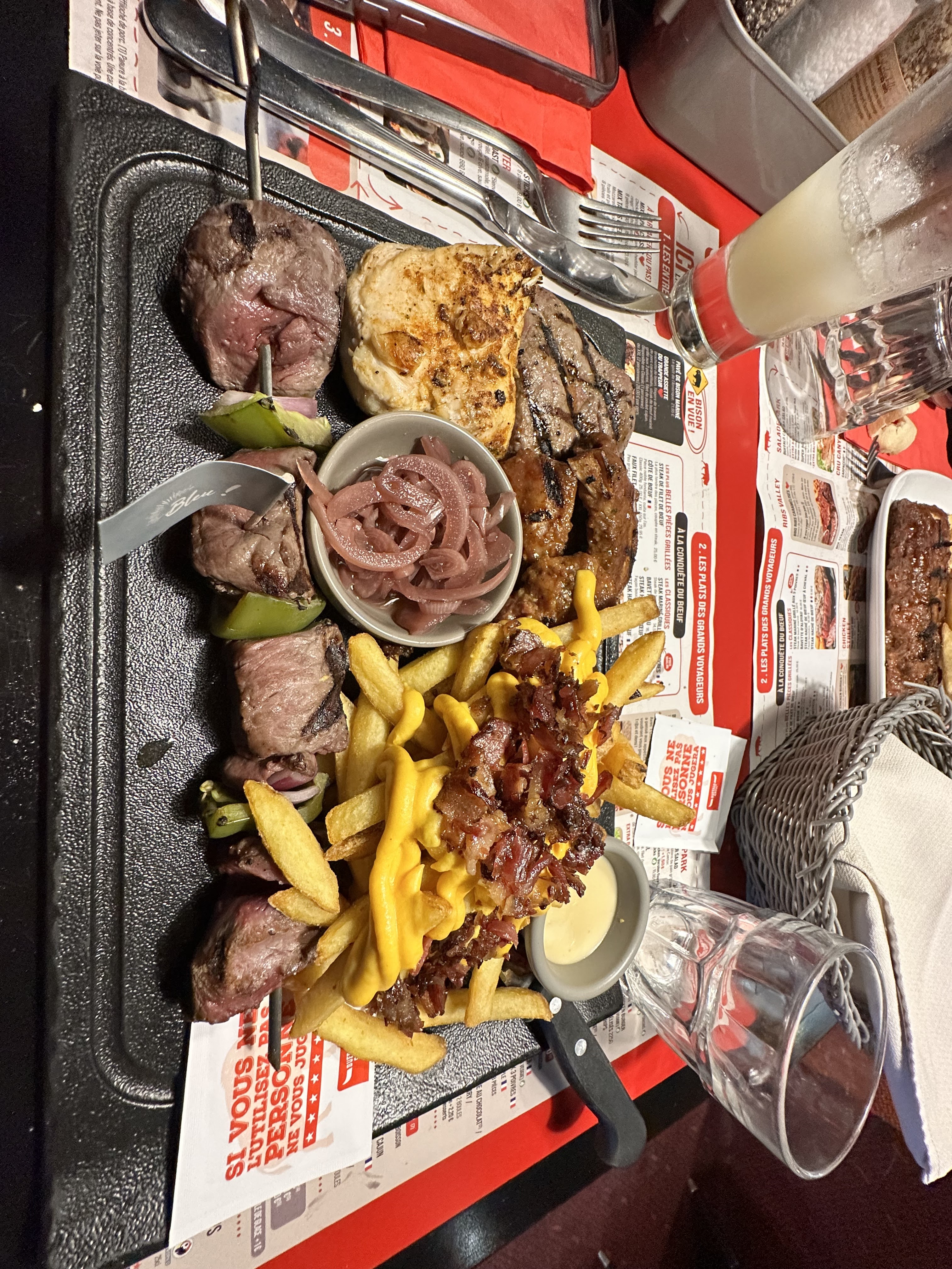 Habitués depuis quelques années, nous avons été déçus de la quantité, tout est en supplément dorénavant (accompagnement et sauce). Et le burger classique au menu manquait de plusieurs ingrédients, simplement le pain, le steak et oignons étaient dedans. Pour le prix qui lui aussi a augmenté c'est vraiment décevant.