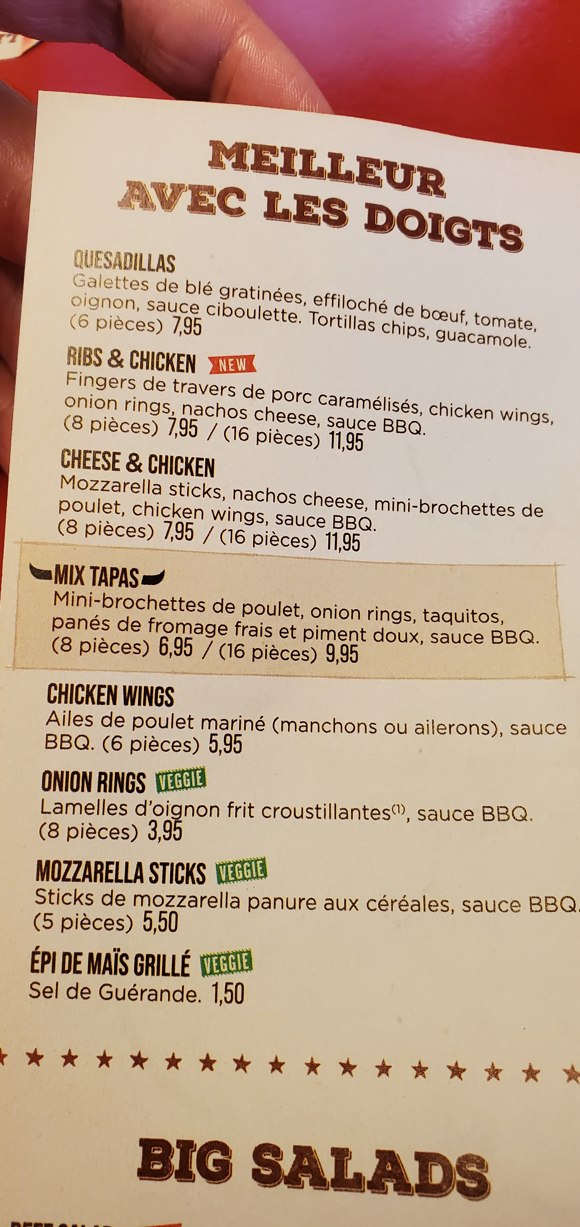 Assez bon dans l'ensemble mais j'ai pris une salade césar il n'y avait que de la salade du poulet et un peu de fromage, pas de tomates, je trouve qu'il manquait un peu de garniture