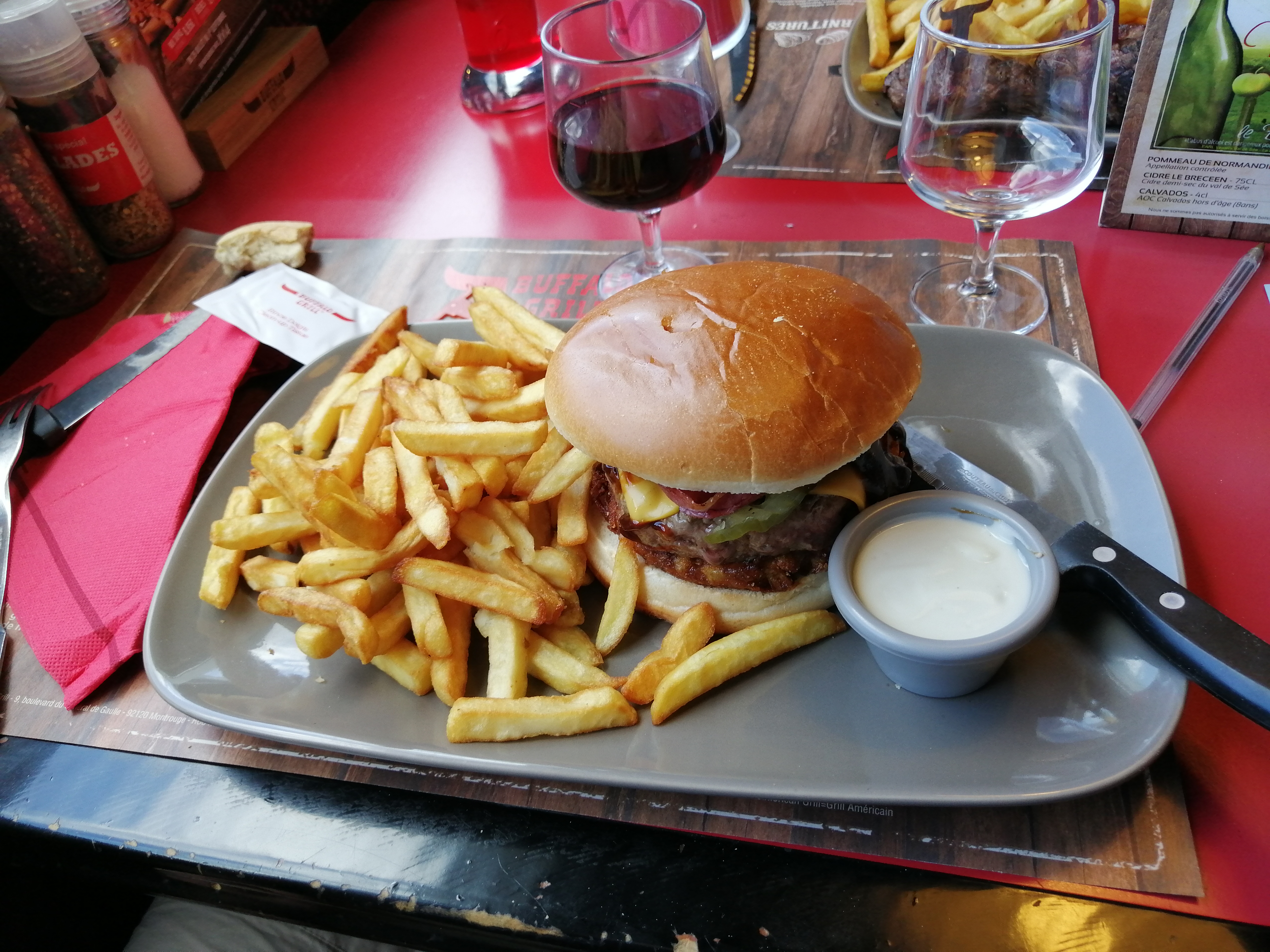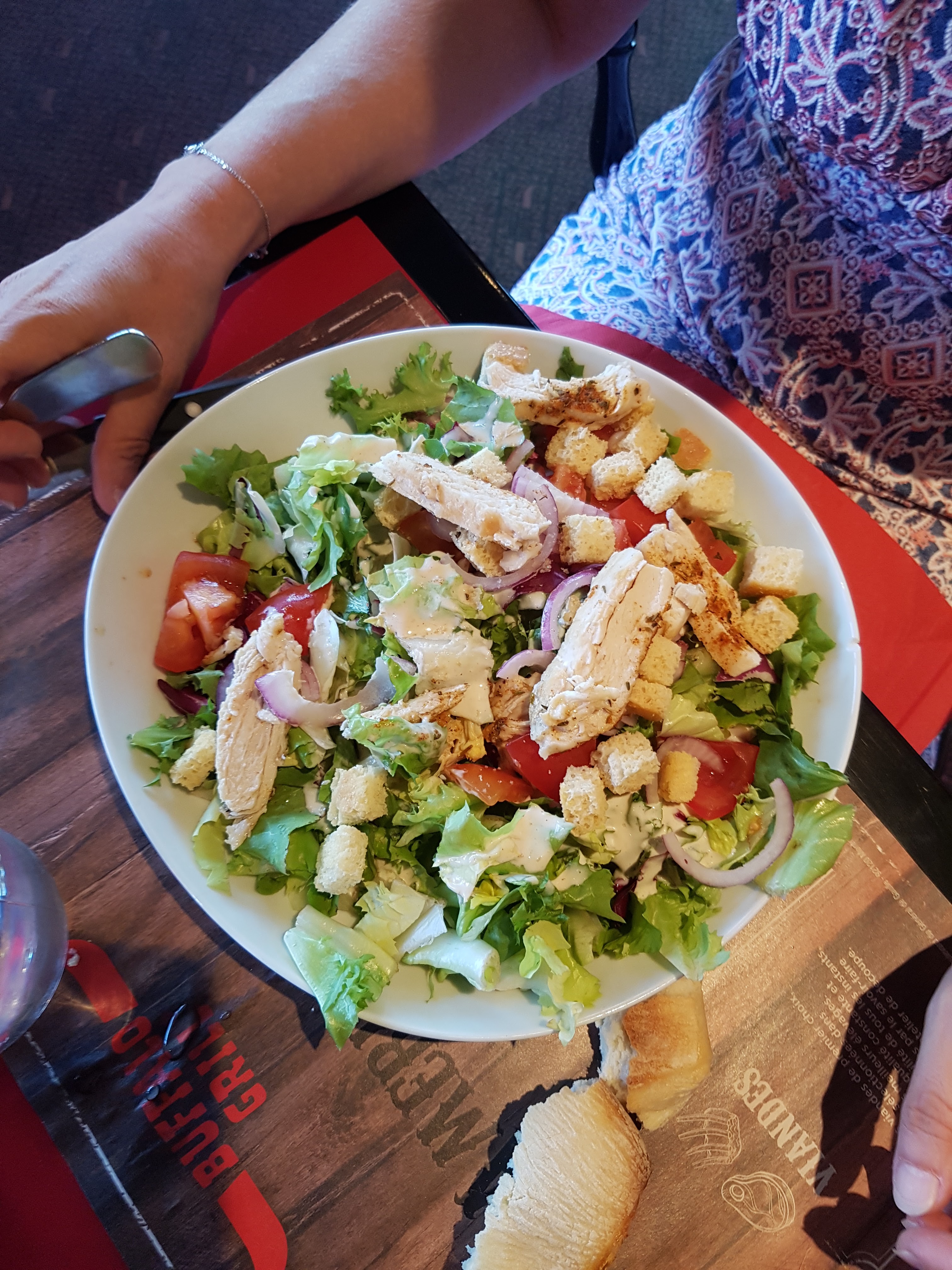 Toujours aussi bien pour une petite escale. La salade de bienvenue est, d'après moi une bonne idée. Le personnel de ce Buffalo est accueillant. Service rapide. Plats à la hauteur de nos attentes. Seul bémol, le chilli con carne m'a laissé très dubitative, viande tendre mais plat trop salé ce qui est vite écœurant. Bref un note plutôt bonne pour ce petit restaurant. Je recommande.