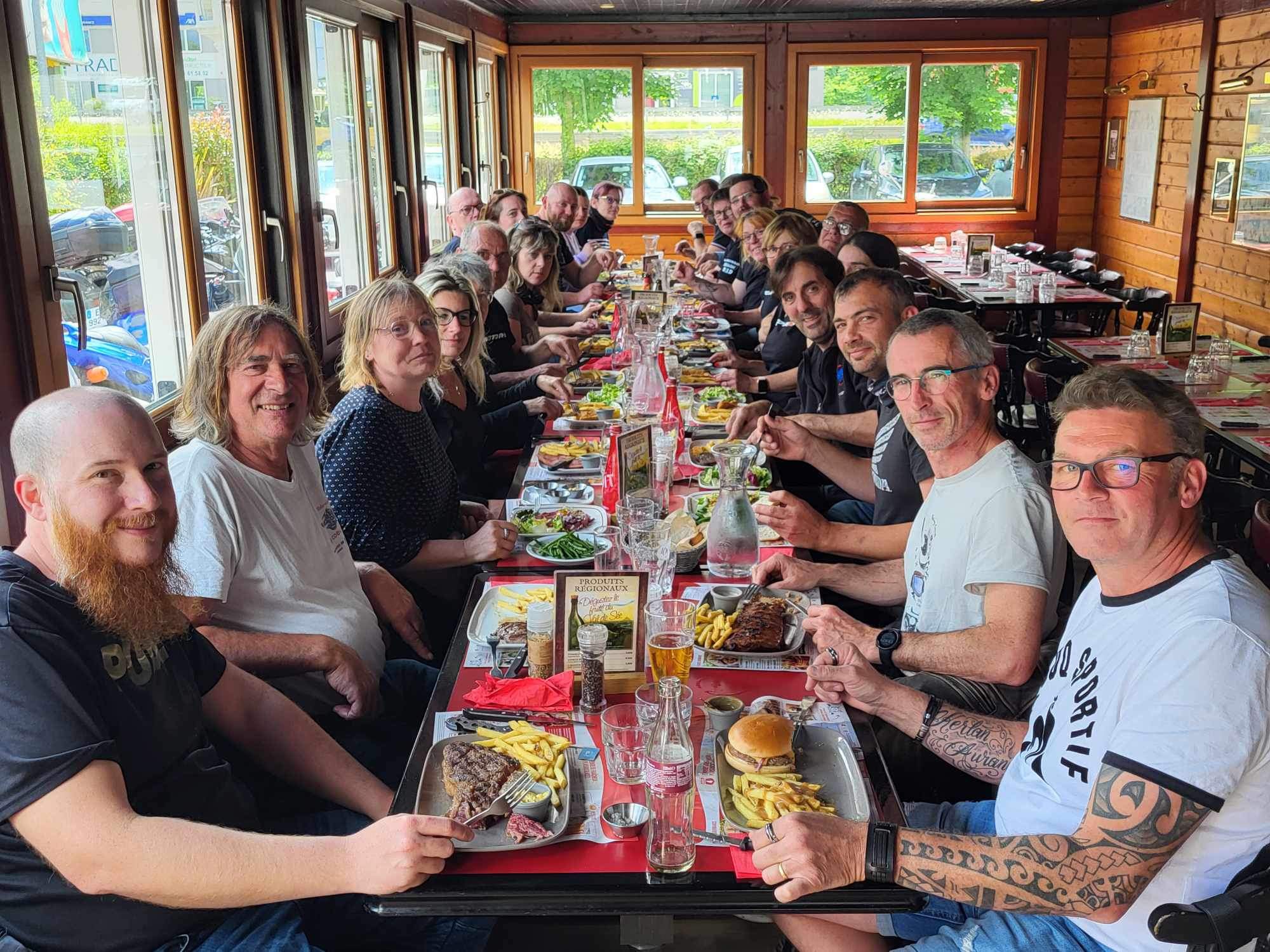 Nous sommes un moto club de la manche et nous nous sommes arrêtés pour déjeuner à un groupe d’une petite trentaine de personnes. Nous avons été reçus comme des rois avec une équipe au top ( privatisation d’une partie du parking , endroit réservé dans la salle avec vue sur nos motos, équipe très sympas et très serviable) avec une mention spéciale pour Mickael Nous recommandons fortement cet établissement. Moto club by-cœur de Gouville