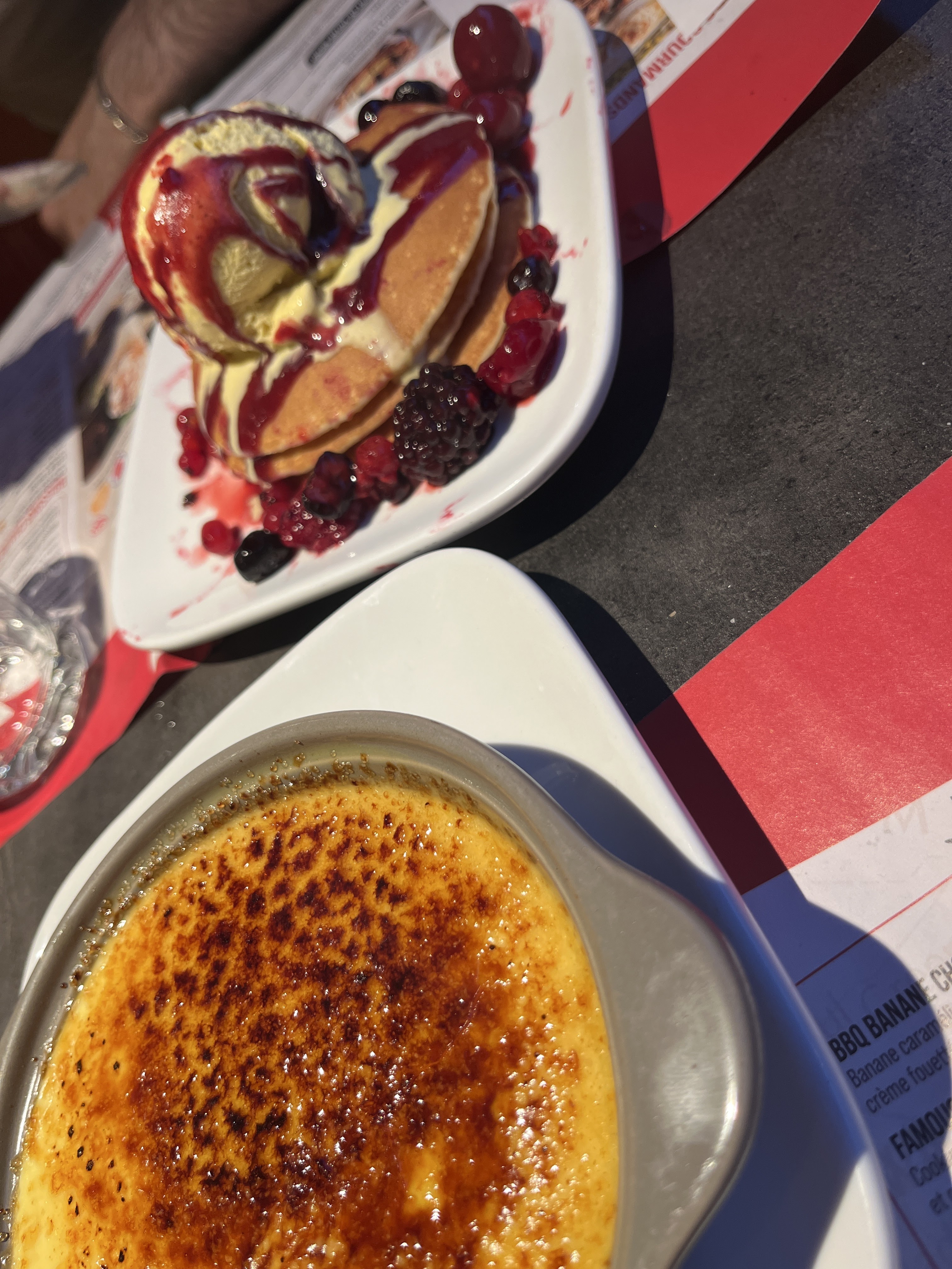 Bjr ,serveur sympathique, entrée sans pain en cours de cuisson , chili très bon mais la portion etait a 16,50€ n est pas suffisante et toujours pas de pain ,arrivé la commande des desserts ,pas de barbe a papa pour les enfants , je commande une coupe America ,pas de glace vanille et une attente de 20 mn entre la prise de la commande et l arrivée des desserts Un peu plus de 28€ pour un plat ,une boisson ,un dessert , je trouve la note un peu salé