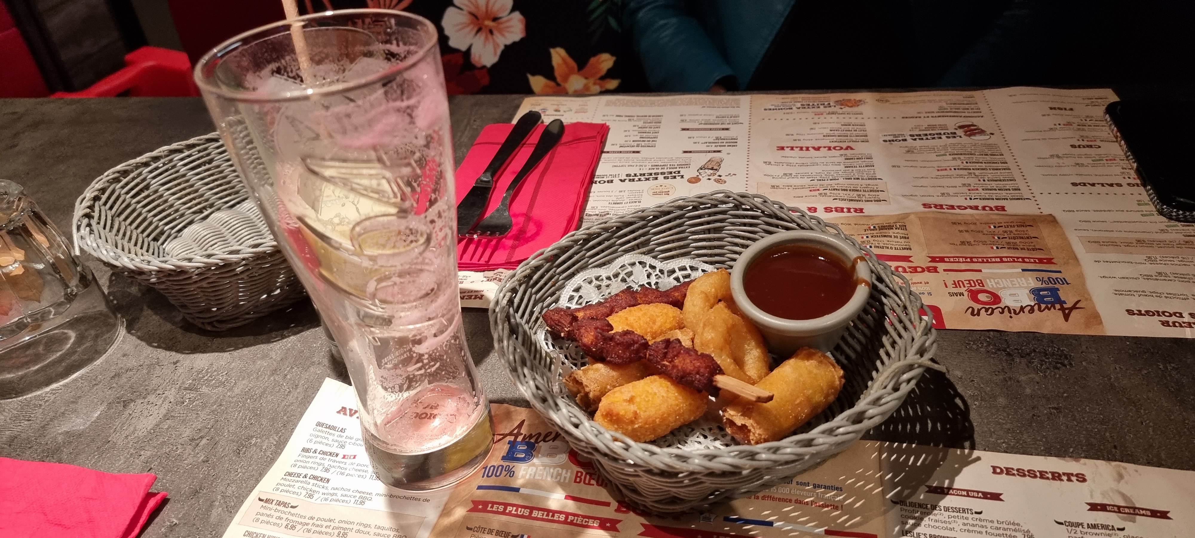 Nous avons été bien installés par la serveuse mais le service était un peu lent malheureusement. Nous avons attendu environ une trentaine de minutes pour qu'on prenne nos commandes et plusieurs clients qui étaient installés après nous ont été servis avant nous (je précise que le restaurant n'était pas pleins, peut-être pas assez de personnel ?) Nous n'avons pas eu de panier de pains pour patienter, ni de salade d'accueil (peut-être était ce normal, nous n'avons pas osé réclamer). La cruche d'eau est arrivée également tardivement (là oui j'ai osé demander parce que nous n'avions pas commandé d'autres boissons). Le poulet cajun que l'on m'a servi est arrivé SANS épices (j'avais déjà goûté ce plat dans d'autres B.G et j'ai adoré donc j'ai pu constaté la différence). Malgré tout ça, les portions de frites étaient généreuses, les mozza stick bien chauds et le serveur était très aimable et faisait de son mieux (nous lui avons d'ailleurs laissé un pourboire). Nous espérons que ce commentaire aidera le restaurant à s'améliorer ! Bien à vous, Mme PIERRE