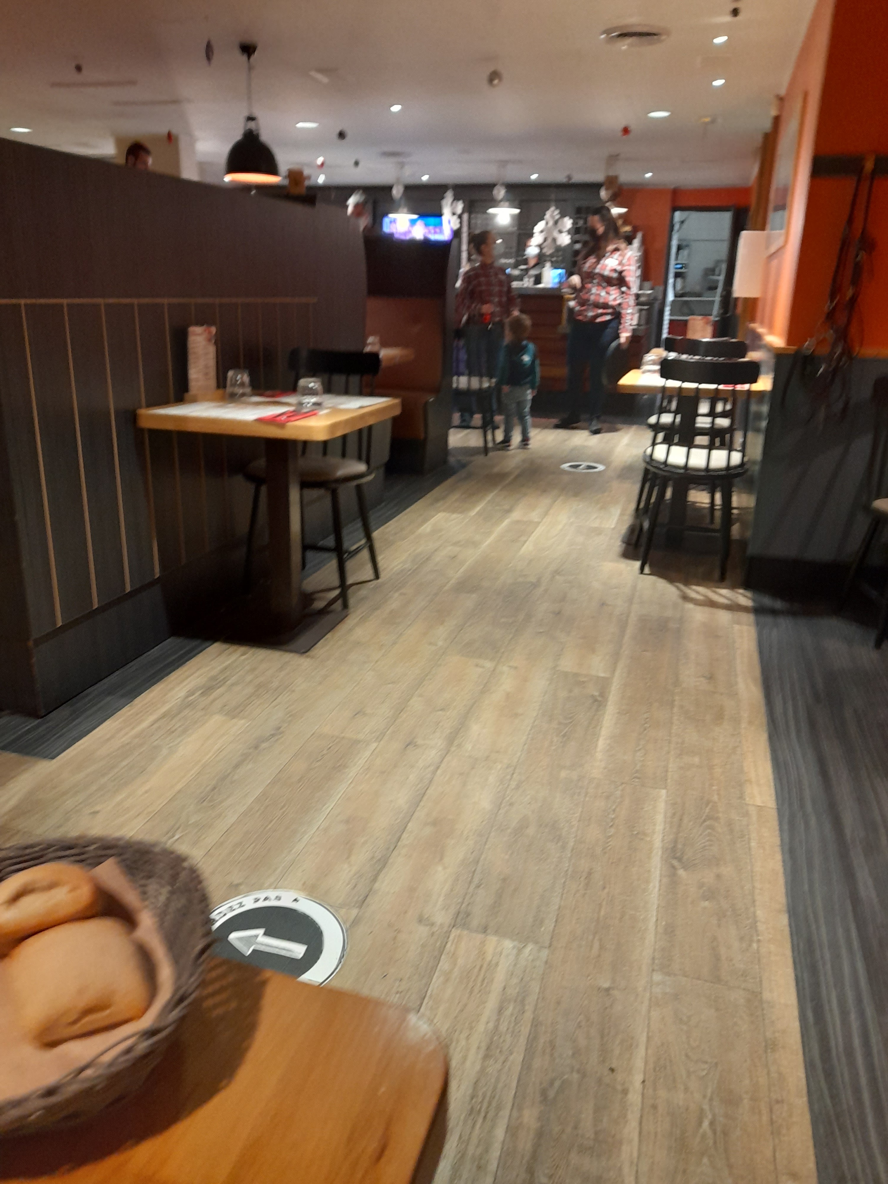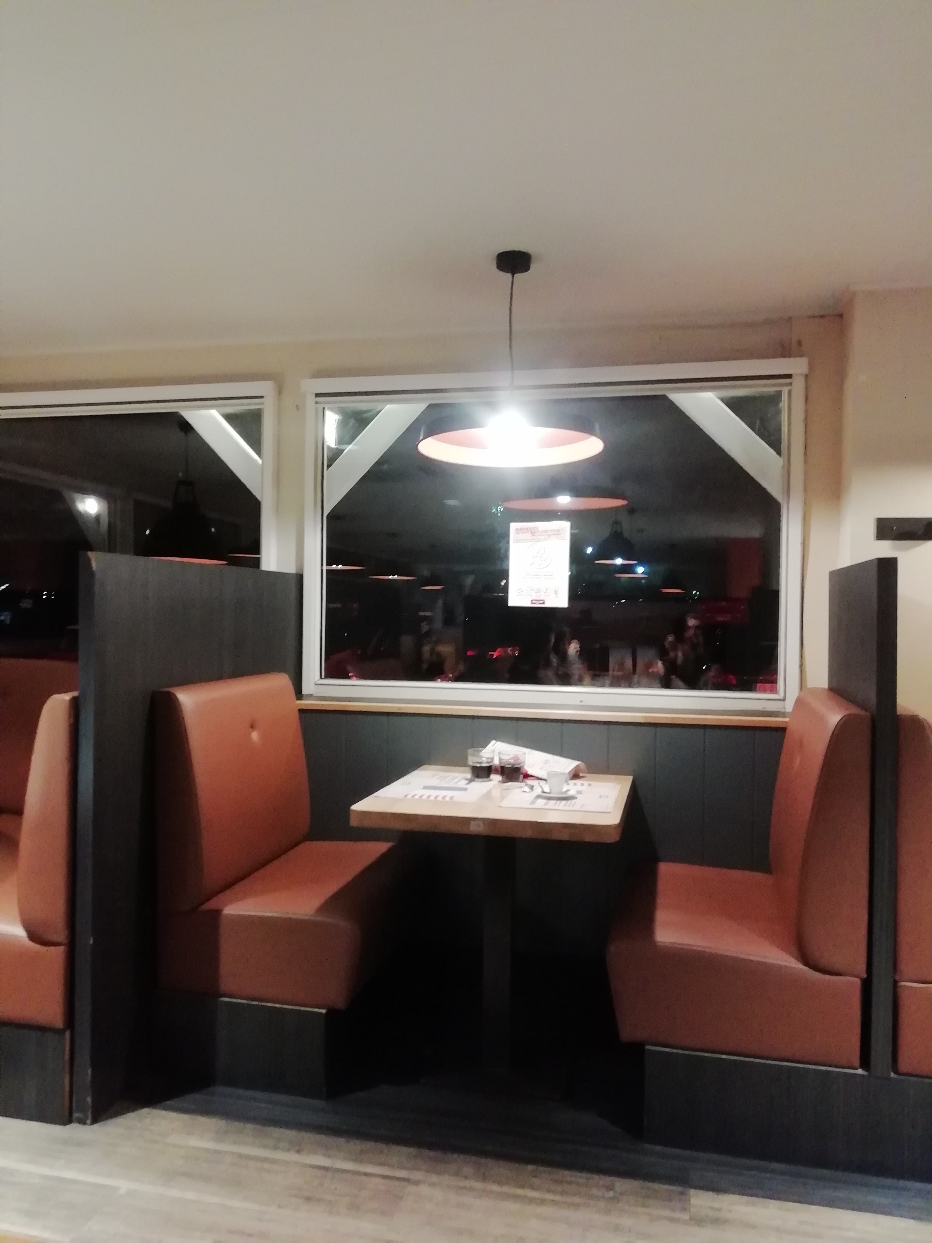 Même si la cuisine est au niveau de cette chaine (moyenne) mais ça nous le savons tous !! La promiscuité d'un groupe ne sachant pas se que veut dire Restaurant et pas cantine ou réfectoire d'un collège en ne renversant pas son assiette sûr la table pas plus que les salières au sol. !! Et faire attention ⚠️ à vos notes au moment de la réglée ( erreur de table )