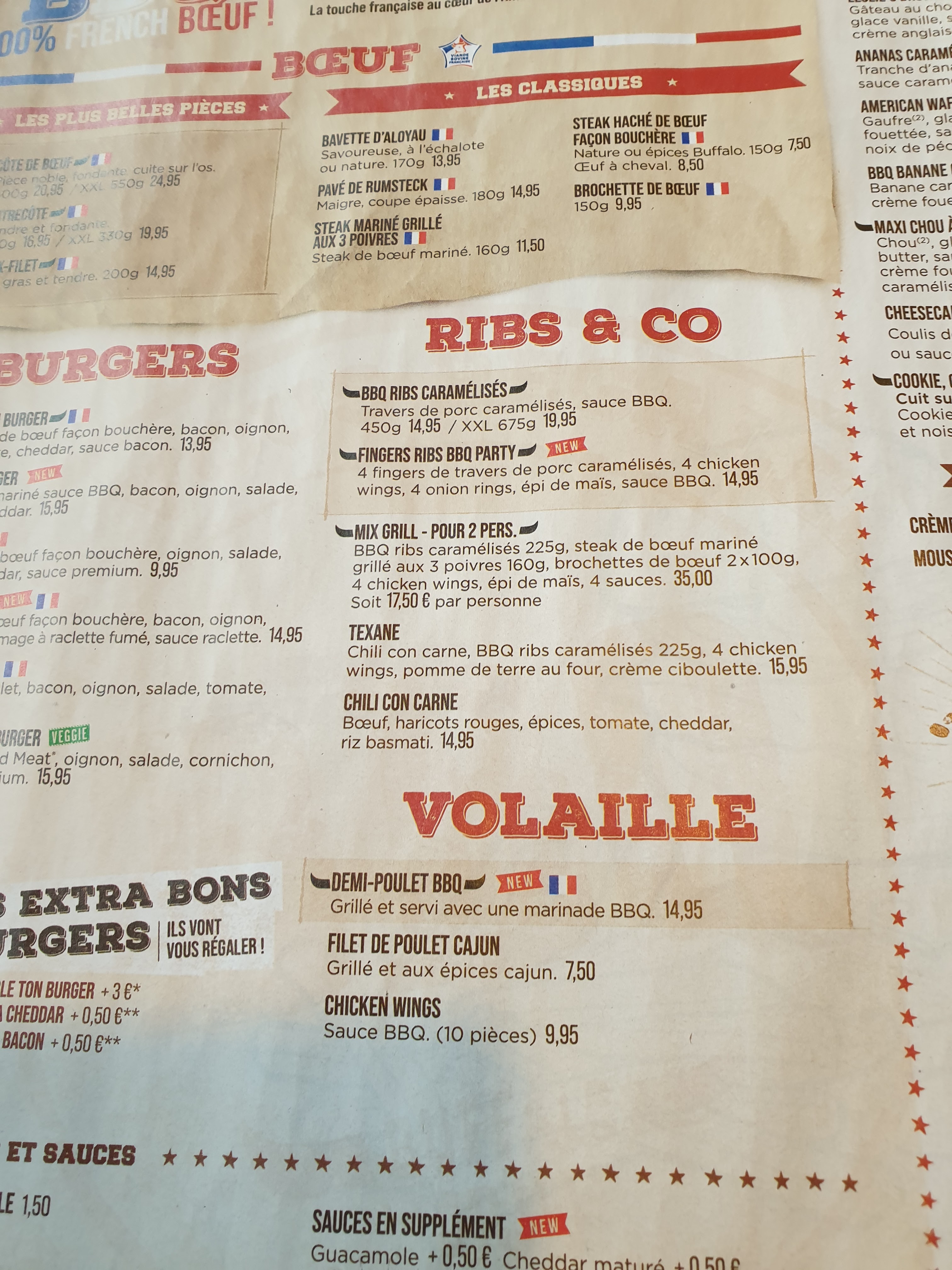 Repas correct, sans plus. Ribs froides. Cependant la serveuse très agréable gentille et rapide. La terrasse dans un état très négligée, la propreté des toilettes laisse à désirer.
