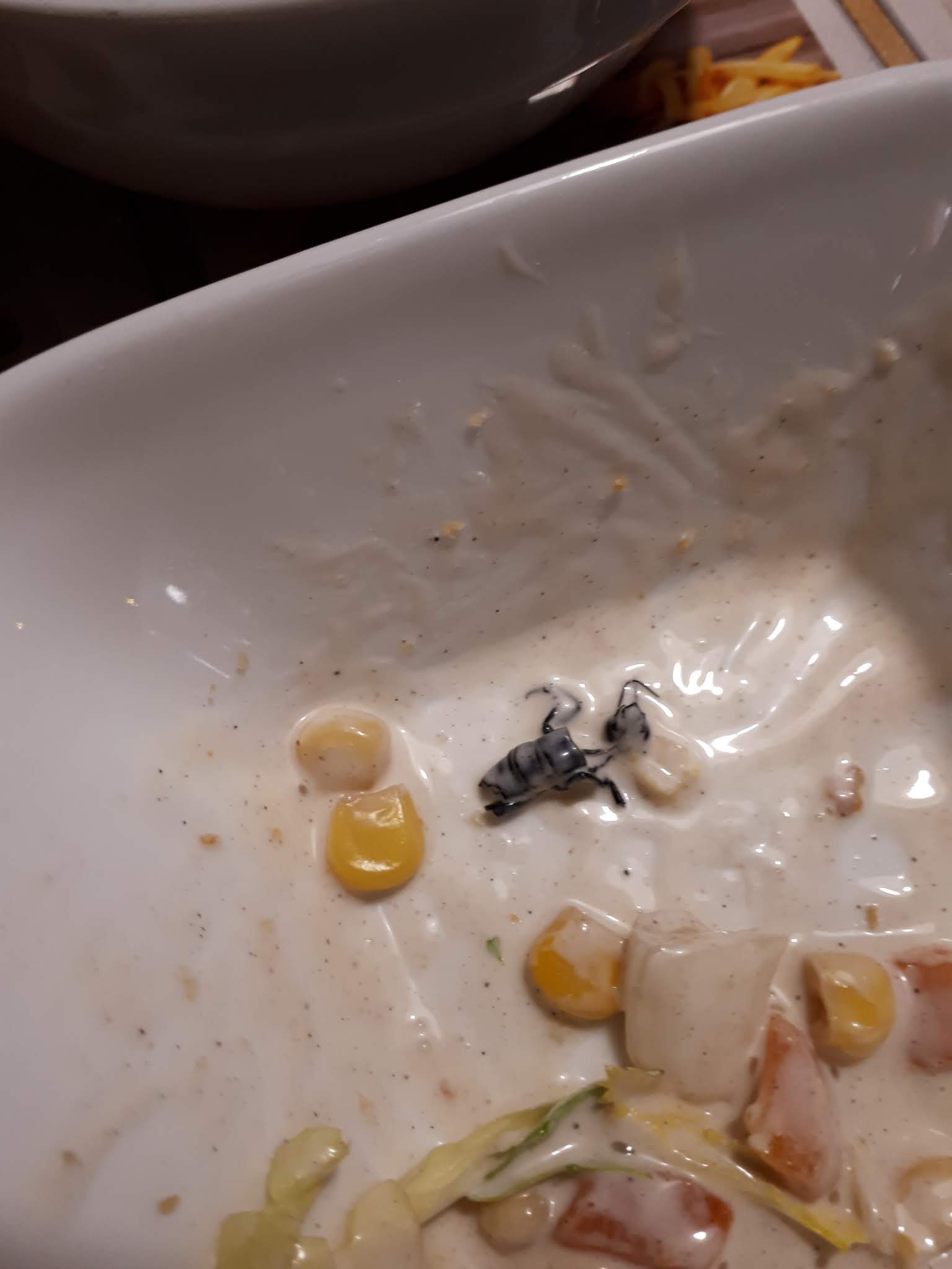 Lors de la dégustation de ma salade de bienvenue (offerte), j'ai eu la stupéfaction de trouver un insecte dans celle-ci (photos ci-jointes). Le responsable s'est excusé et m'a indiqué que pourtant, tous les produits étaient vérifiés et triés. Il ne m'a ni changé mes couverts, ni remplacé ma salade ... On m'a seulement fait un petit geste commercial sans aborder le sujet de la soirée. J'ai trouvé que les plats étaient vraiment peu copieux. De plus ma collègue a été malade le soir même. En bref, soyez prudents !