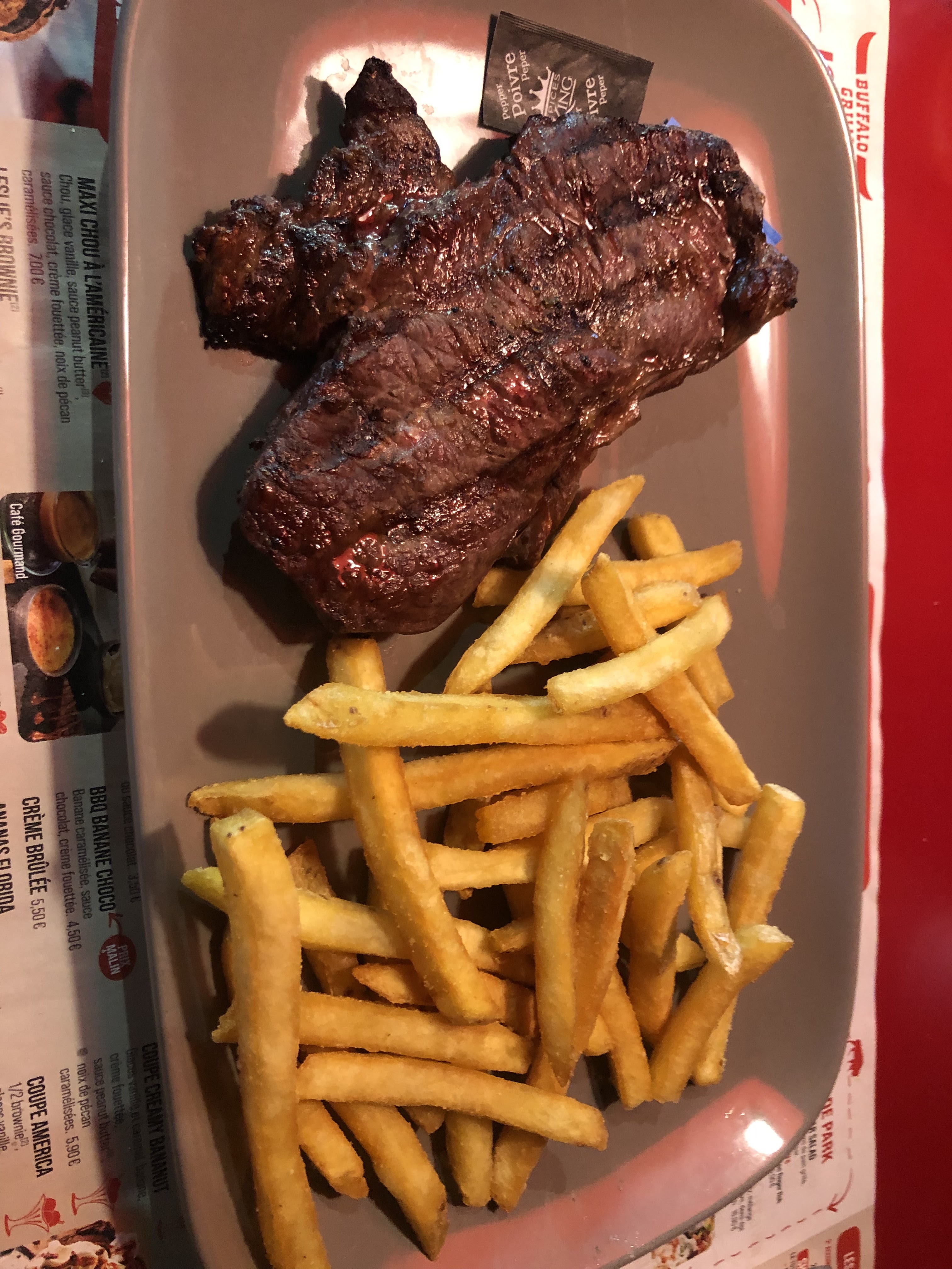 nous avons très bien mangé au Buffalo grill ce midi même. Les plats étaient bons et consistants avec un prix correct Marwan, notre serveur, s’est montré souriant et efficace, a mis à disposition de l’eau à notre toutou sans que nous le demandions :) Notre fils a été ravi de repartir avec un joli ballon !